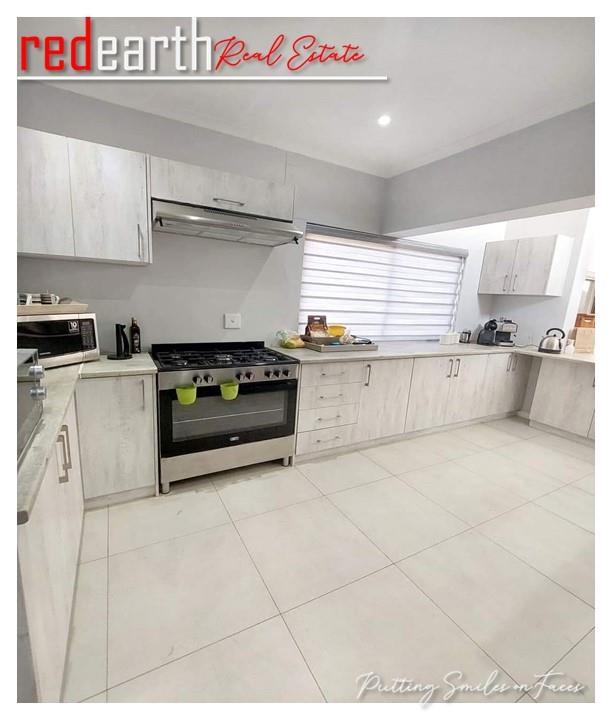 A bright and spacious family home (ERF 453 sqm) with a large patio for entertaining guests at a summer cookout. Also, a swanky kitchen with clean lines and crisp white cabinetry. This is an absolute move-in-ready home, waiting for you to fill it with your personal energy. The garden has a well-sized rolling green lawn with auto-mated sprinkling system.