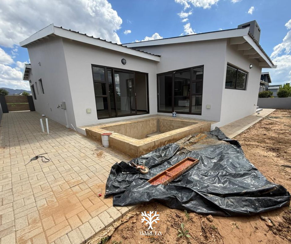 Set within the secure and nature-rich Finkenstein Village, this modern home offers tranquil living surrounded by open landscapes and wildlife, while still being within easy reach of Windhoek. Designed for comfort and lifestyle, the property combines spacious indoor living with generous outdoor areas in a peaceful estate setting.