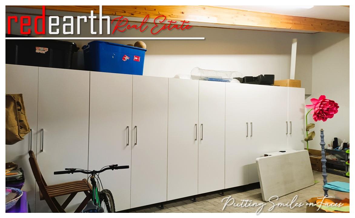 One room fitted with a sink and cupboards, providing practical workspace or storage.