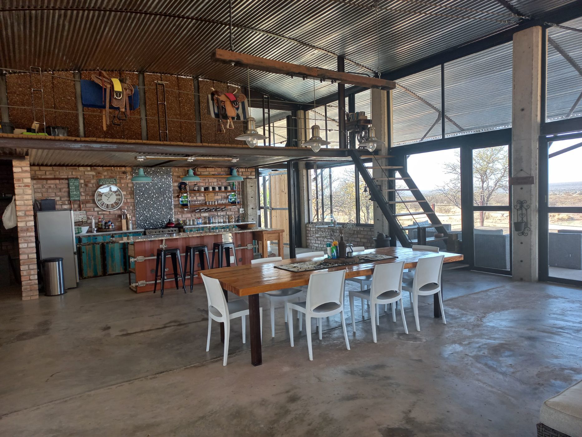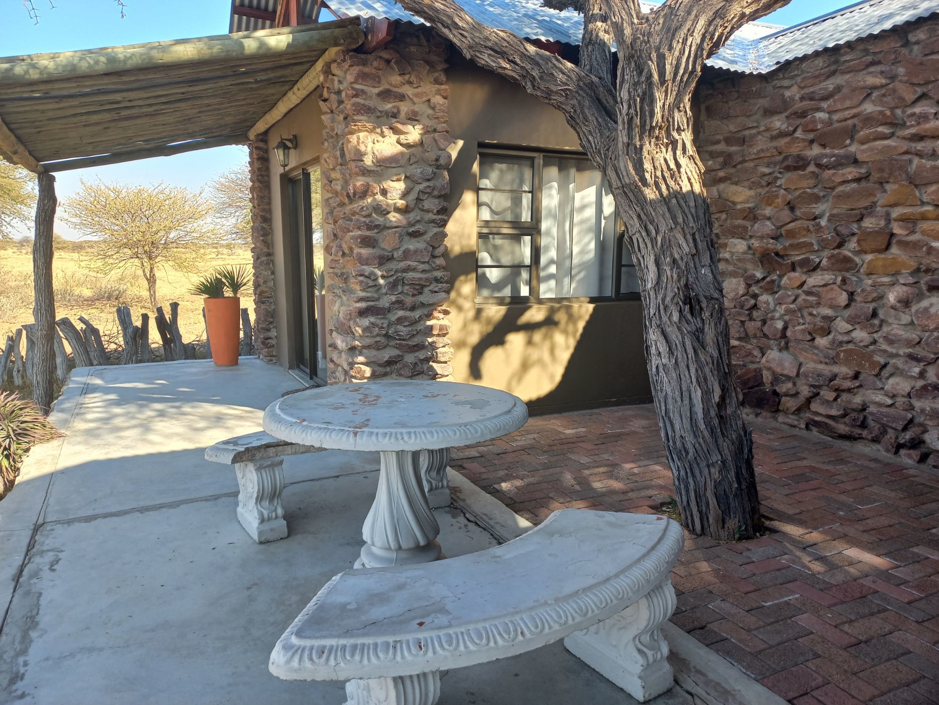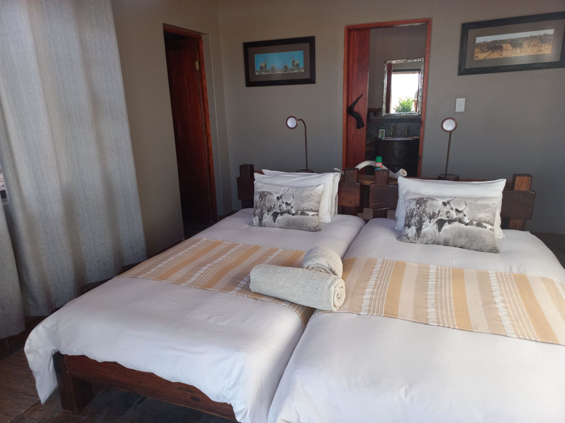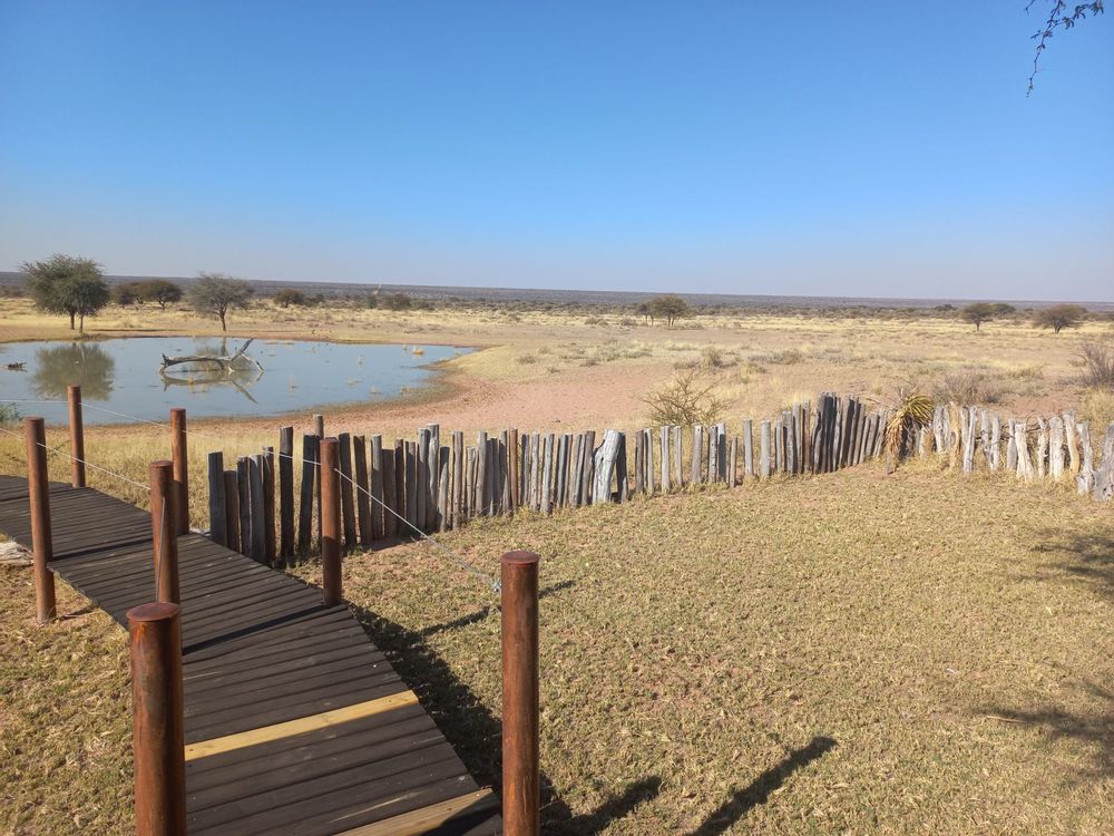 Beautiful guest lodge accommodation surrounding a natural water hole with self-catering facilities, swimming pool, braai and well-maintained garden.