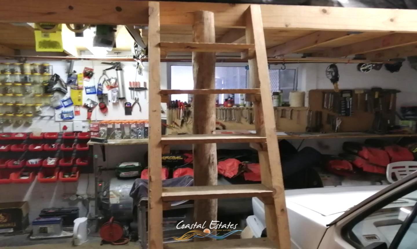 Security has been meticulously addressed with high boundary walls, security lights, and solar-powered security lighting to ensure peace of mind. The property also includes two garages with extra storage space.