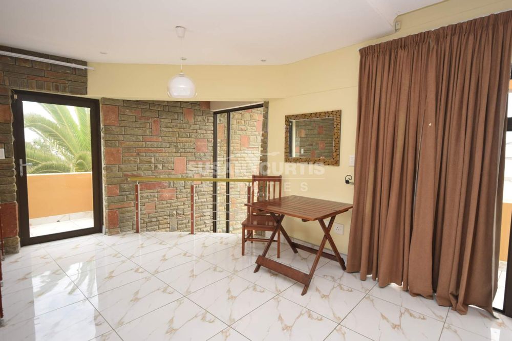 # Large main Bedroom. Opens up to a balcony, with partial sea view.