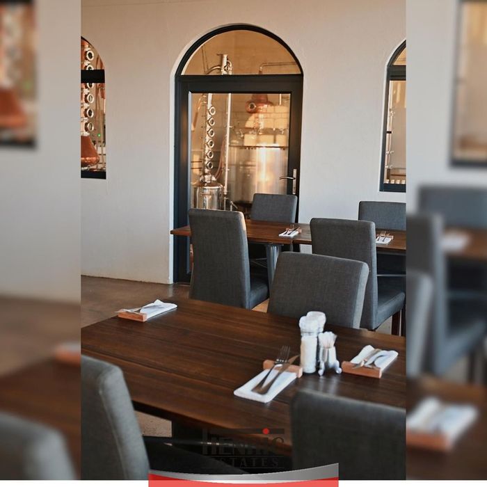 Amid Stampriet’s red Kalahari dunes: Chenin Blanc vineyards, boutique distillery, farm-to-table restaurant and wedding venue — guesthouse, two homes and campsites across 34 hectares (9 beds).
