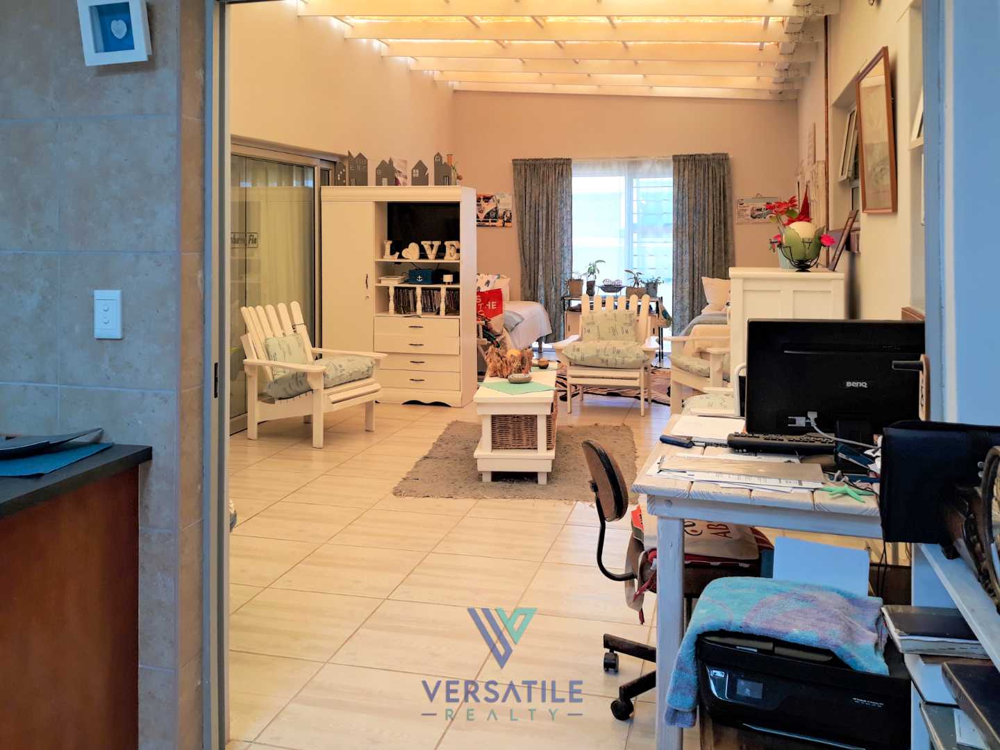 You want to live in this enlightened home, called Agapé, where natural light pour into the 3 spacious open plan living areas, (one with indoor braai) 4 bedrooms (3 en-suite), open plan kitchen (chef will not miss anything), hidden scullery, laundry room and 2 double garages (1 with pit). Can be divided into spacious 1 bedroom flat and 3 bedroom house by closing off a sliding door.