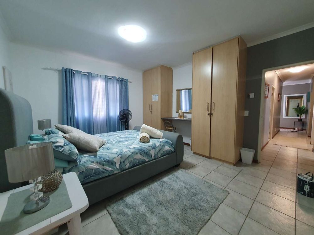 This 220m2 house, offers you 4 bedroom, 2 en-suite, full bathroom, guest toilet, well fitted kitchen, scullery and lounge, with a built-in braai and dining room area. An air conditioner is fitted in the lounge/tv room