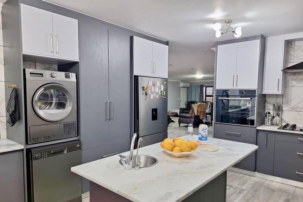 Prime residential property in a sought-after area of Henties Bay. The main dwelling offers 3 bedrooms, 2 bathrooms, a spacious lounge/BBQ area, kitchen and attached garages, plus a 2-bedroom flat on the first floor – ideal for extended family or rental income.
