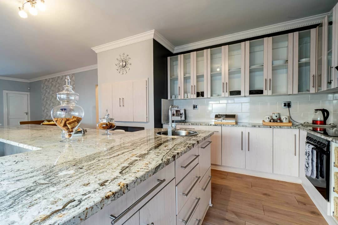 Spacious open plan living room and lounge with well equipped kitchen