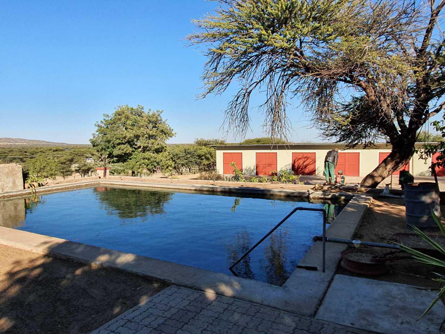 This well-located farm lies on the tar road between Omaruru and Kalkfeld/Otjiwarongo, closer to Kalkfeld.