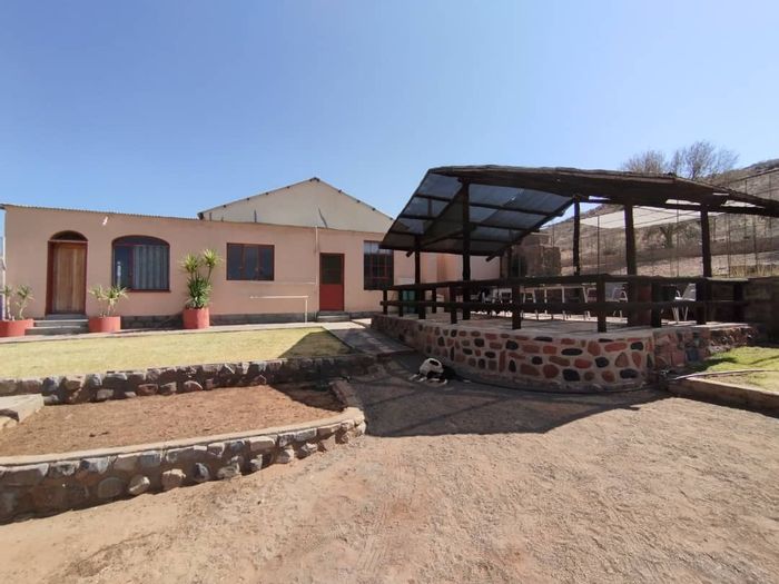 Live off-grid on a 9,583ha Namibian farm perfect for mixed-stock and safari tourism, with renewable solar/wind power, chalets and campsites — main house with four bedrooms and garage.