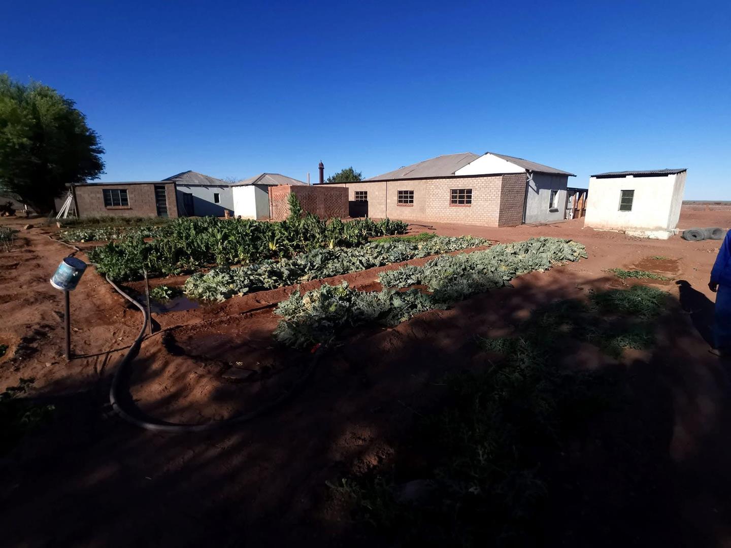 While the sale does not include movable assets, livestock, or game, the property boasts significant infrastructure. The farm features several conventional brick and mortar structures, including a spacious main dwelling of 225m2 and an 85m2 covered stoep. Additional facilities include garages/stores (128m2), an electrical/generator room (10m2), and a laundry with a WC (19m2). The property also includes a 103m2 shed, a newly constructed entertainment area (108m2) currently at 55% completion, a new store/garage (97m2) also at 55% completion, a partially completed new dwelling (175m2 at 25%), and a new warehouse/stores (198m2).