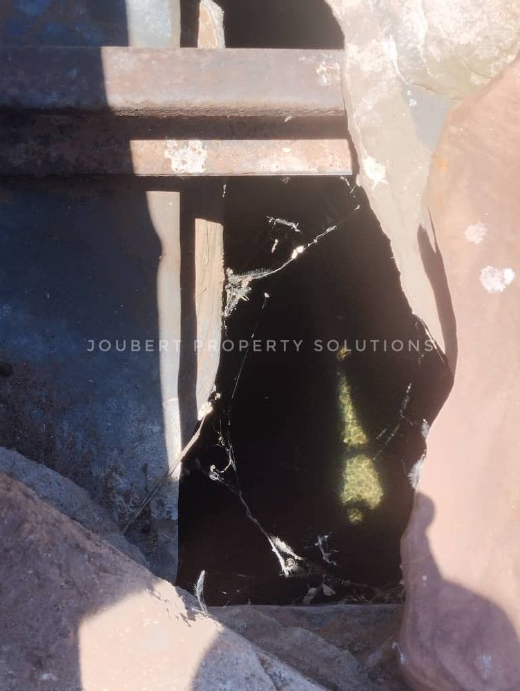 Post 6: "Geelstert: Borehole 6: 50m deep, delivering capacity 5m3/h installed with Grundfos Solar pump)