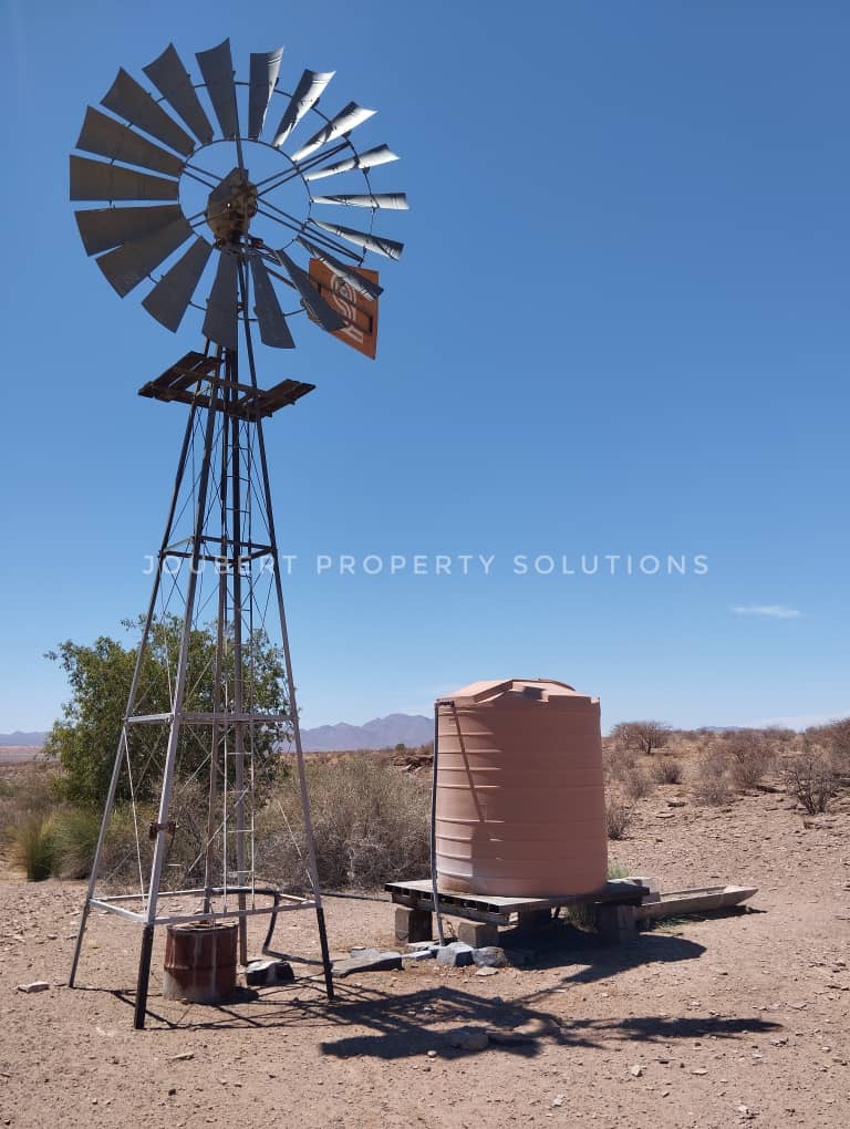 Post 4: "Rooikathok" Borehole 4: 50m deep, delivering capacity 5m3/h installed with 10ft Climax Windmill.