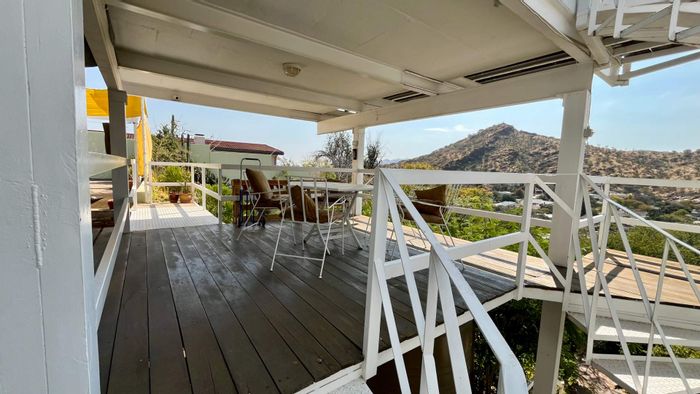 Panoramic Eros Mountain views from a German-style estate in Windhoek’s prestigious neighborhood, set on 1,772sqm with pool, self-contained flat, rustic loft, high security and near Grove Mall.