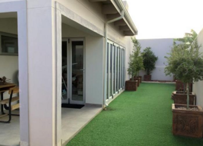 Peaceful suburban retreat east of Windhoek with an airy open-plan lounge, modern kitchen and lush private garden with patio — three bedrooms, two bathrooms and single garage; 55+ buyers.