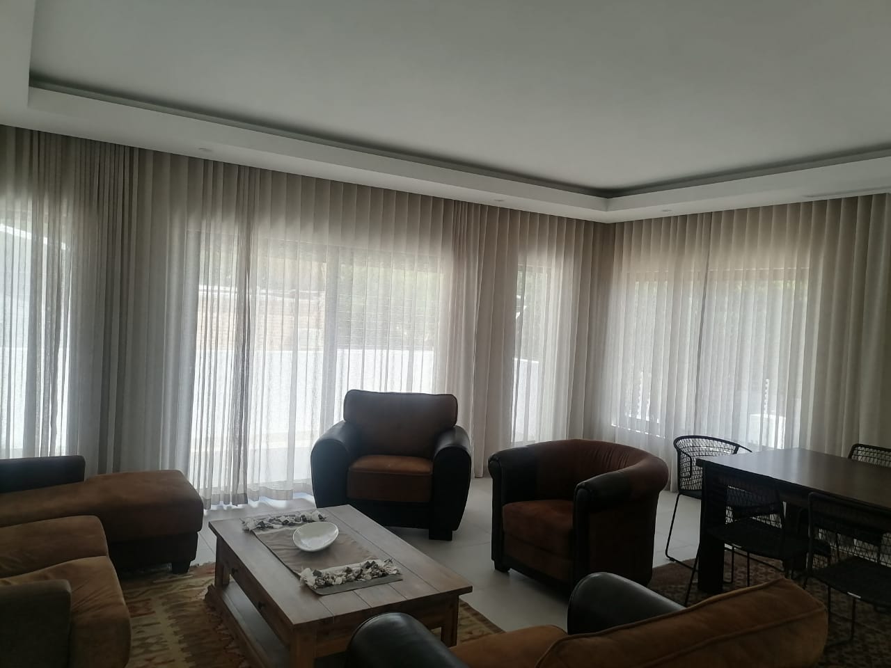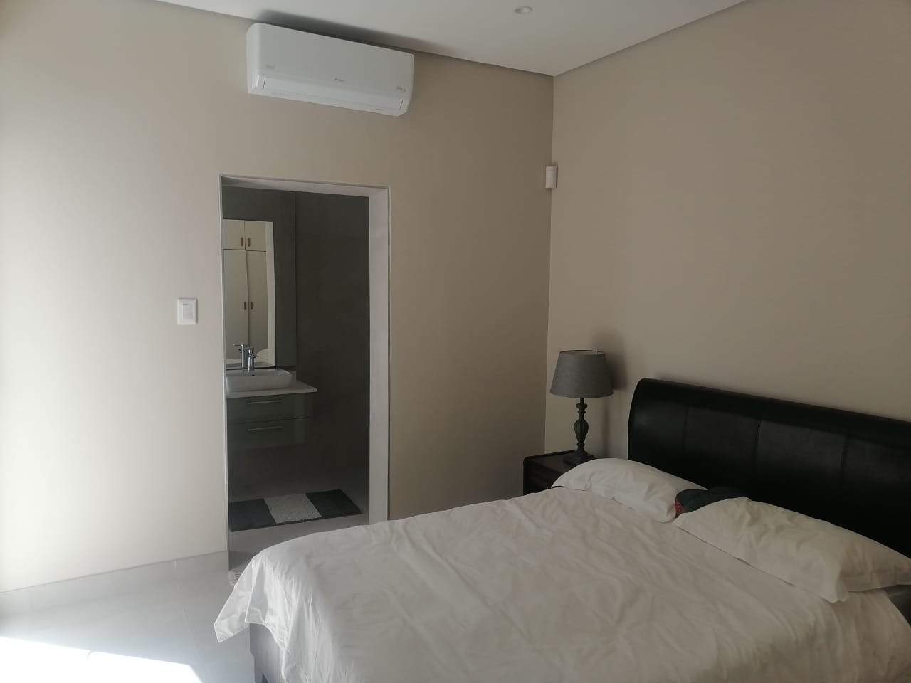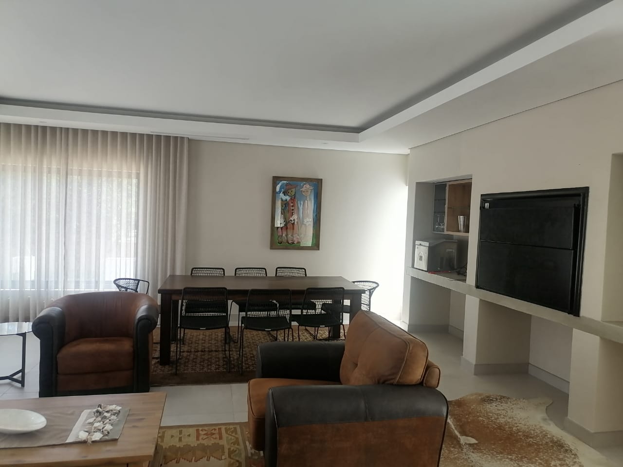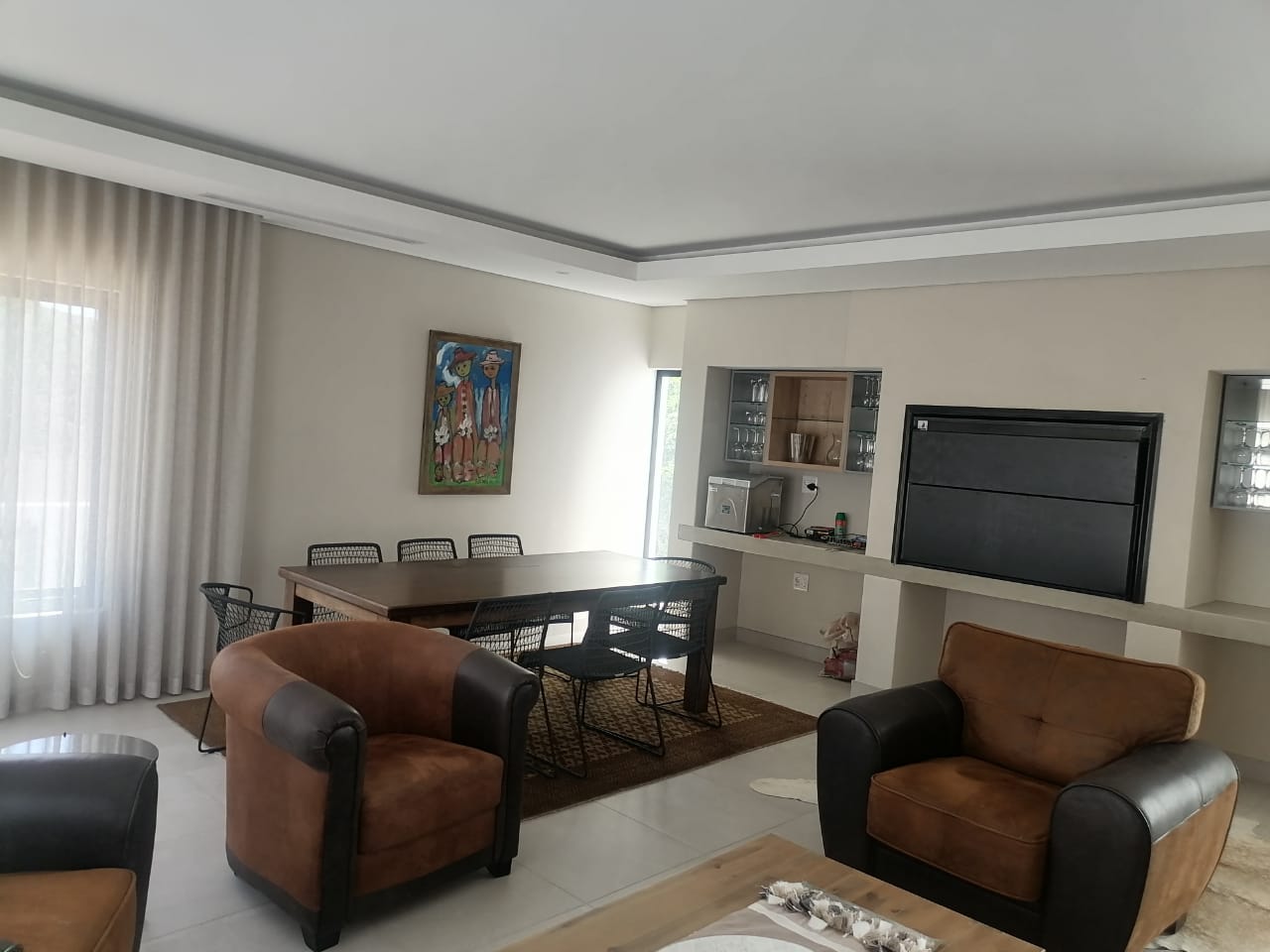 The home features three spacious tiled bedrooms and three modern bathrooms with walk in showers. The contemporary open plan kitchen is fitted with a large gas stove and electric oven, ample cupboard space, and a separate scullery for added convenience. The light filled living and dining areas flow seamlessly to the outdoor spaces, making it ideal for both everyday living and entertaining.