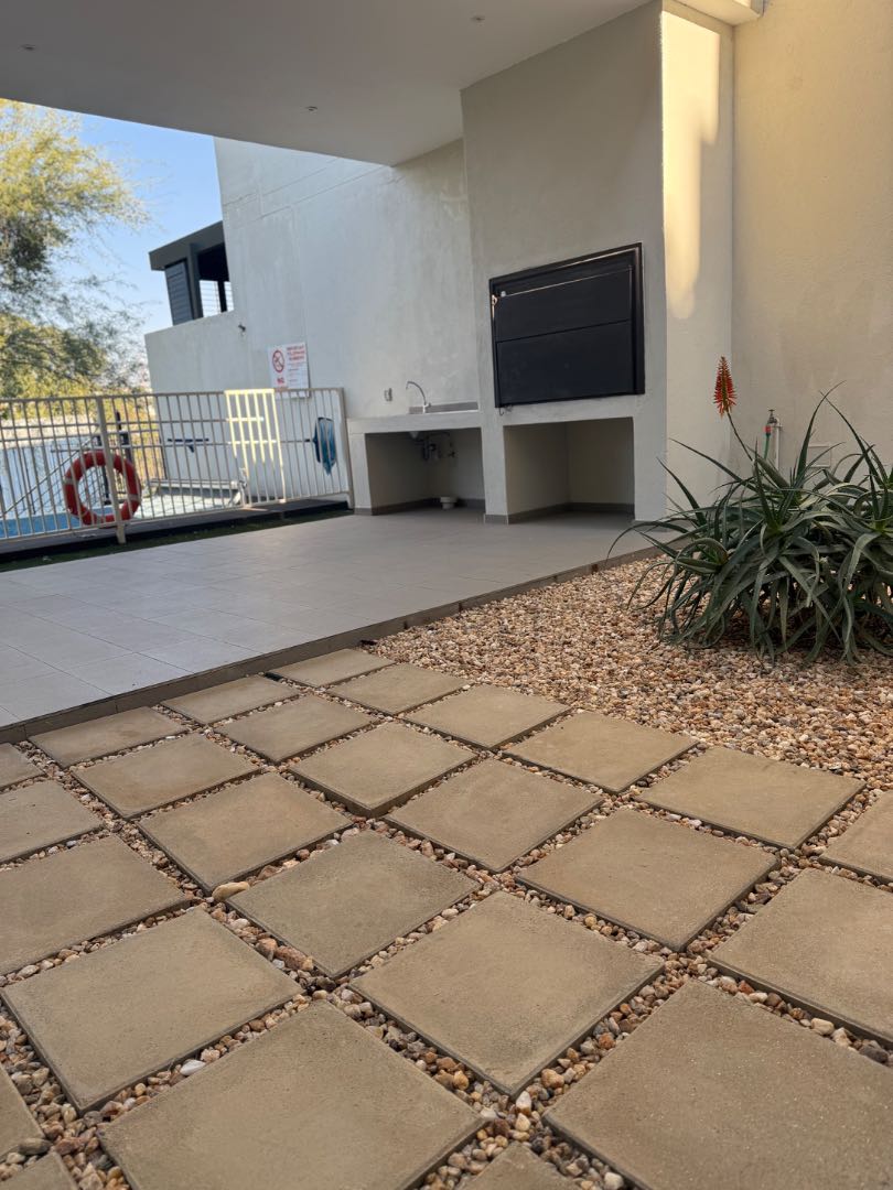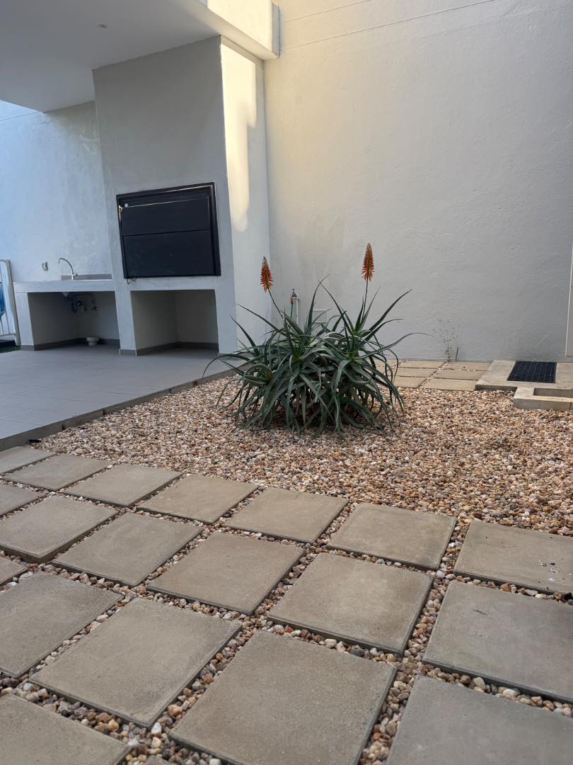 Lounge opens up to under roof patio entertainment area with braai. Pool. Low maintenance garden. Double automated garages.