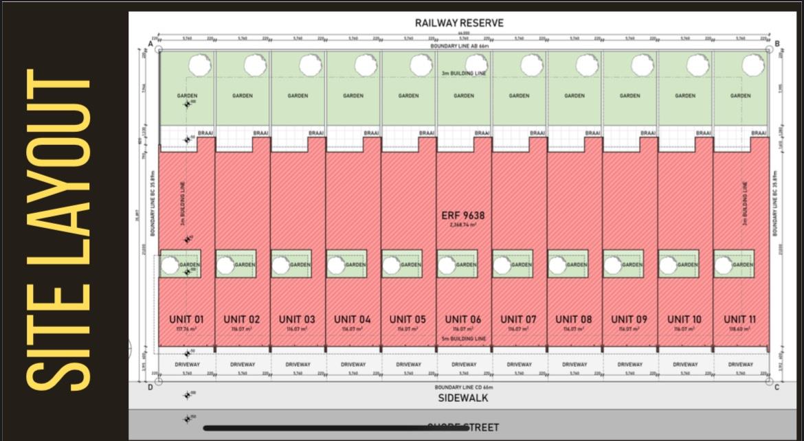 ⚜️ Stylish contemporary living with exposed concrete ceilings, sleek black fixtures, and quality finishes throughout. Ground floor 114.90m2, first floor 76.72m2, plus), stoep (14m2)