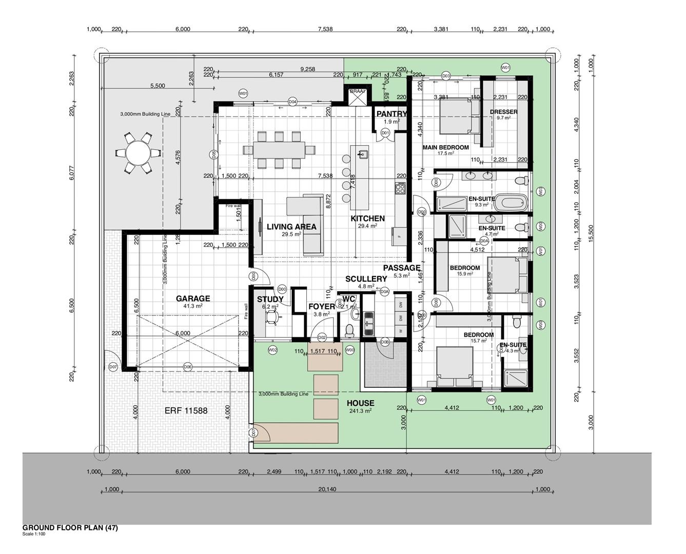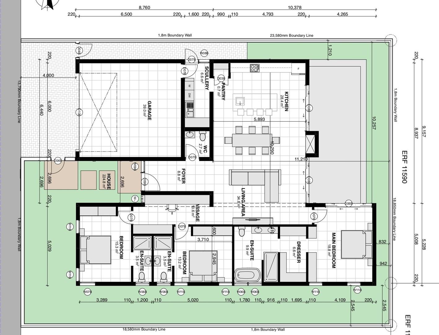 - 3 bedrooms (all en-suite, the master bedroom with a sliding door leading to the courtyard)