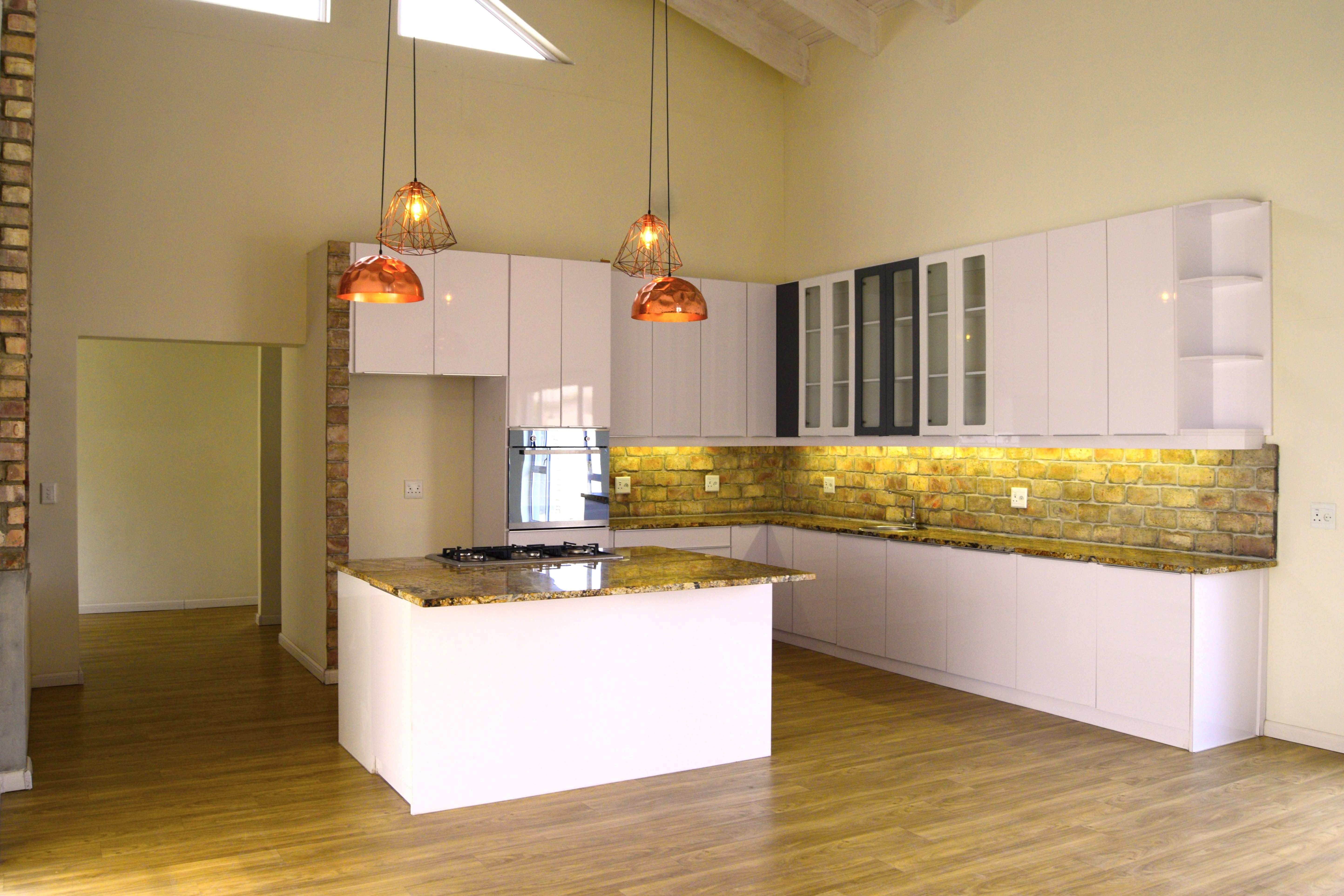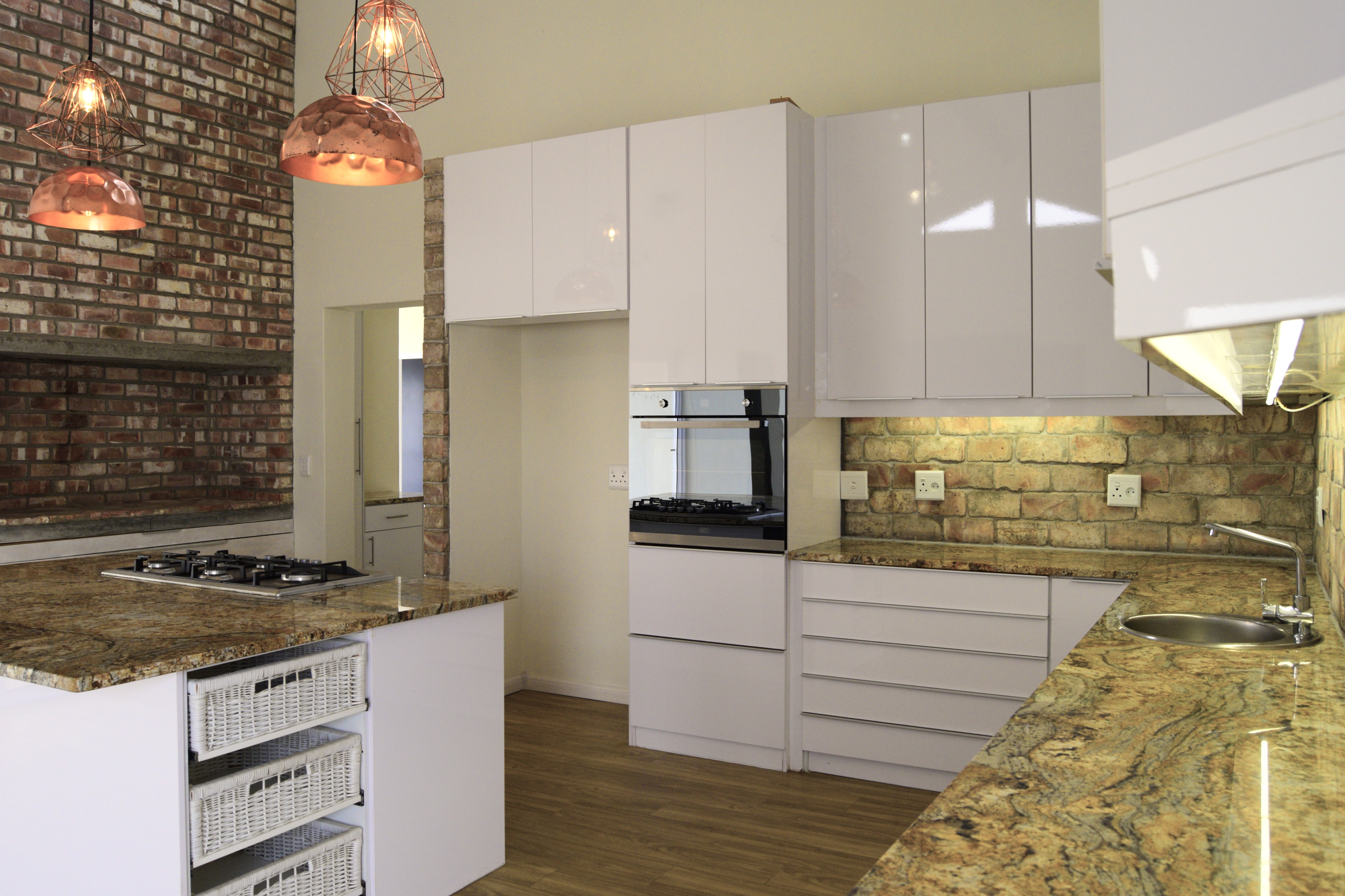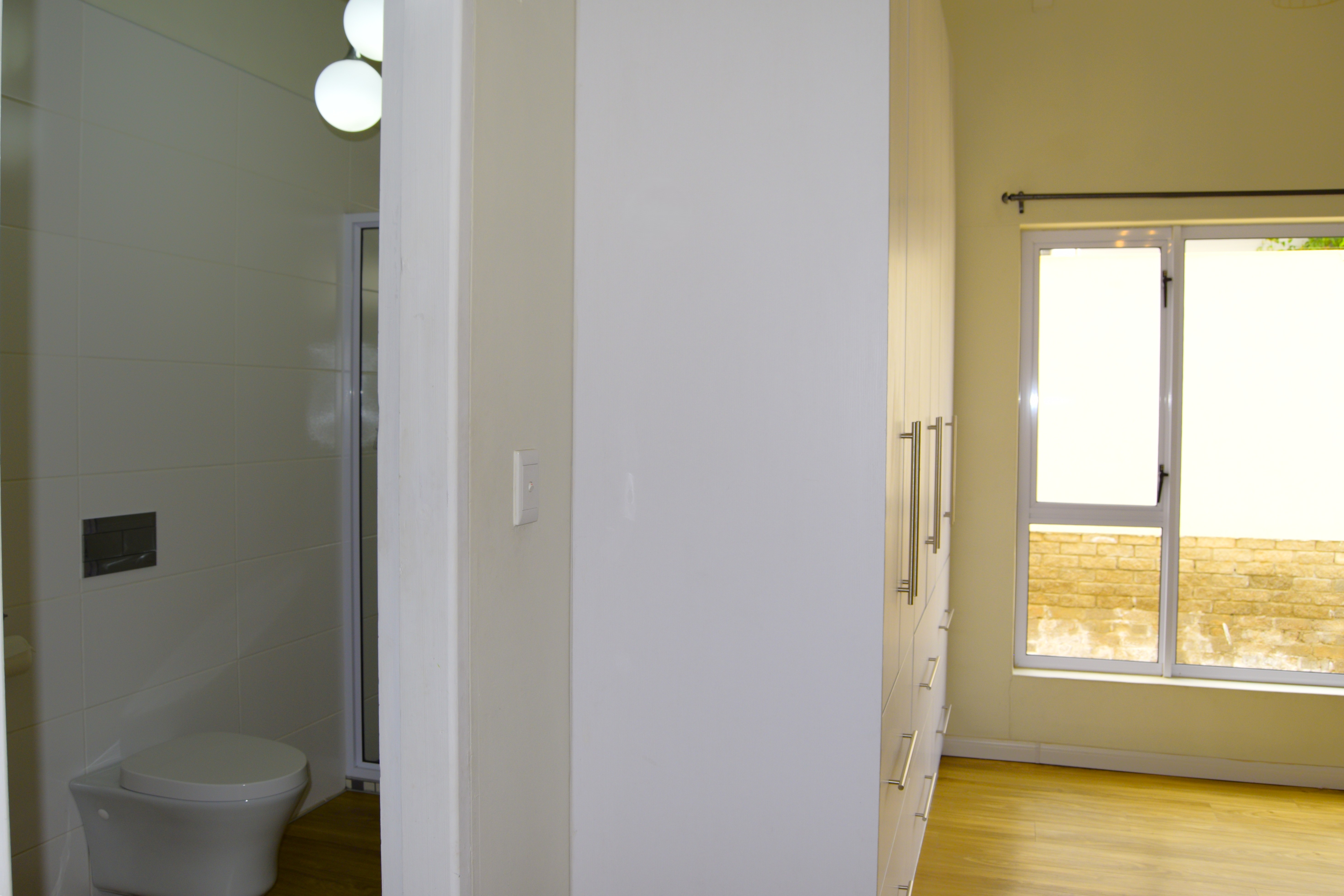 The heart of the home is the modern kitchen with granite countertops, gas hob, and eye-level oven, complemented by a spacious scullery with dishwasher and laundry outlets, keeping the main space stylish and clutter-free.