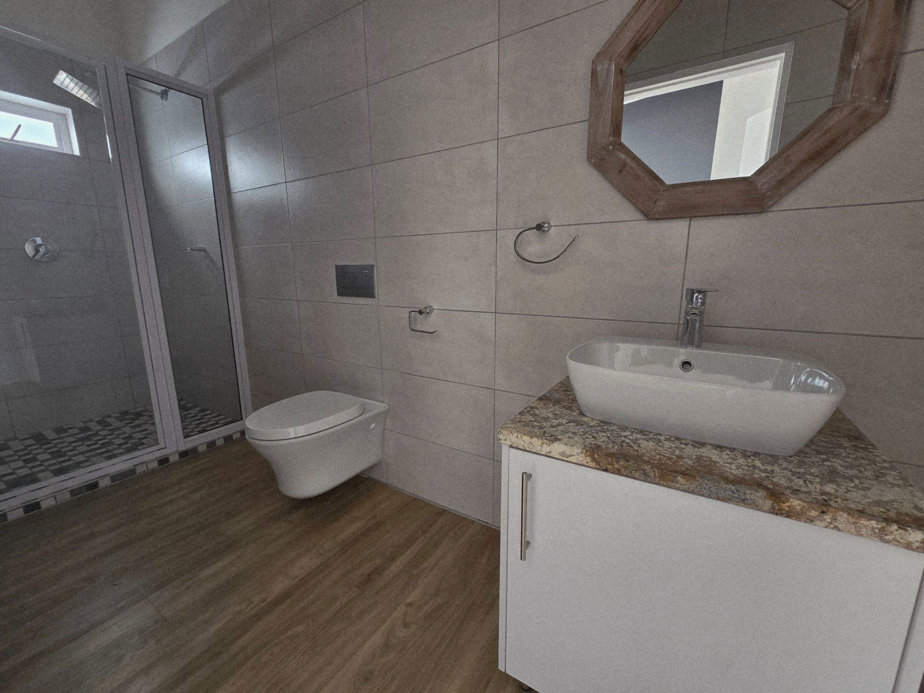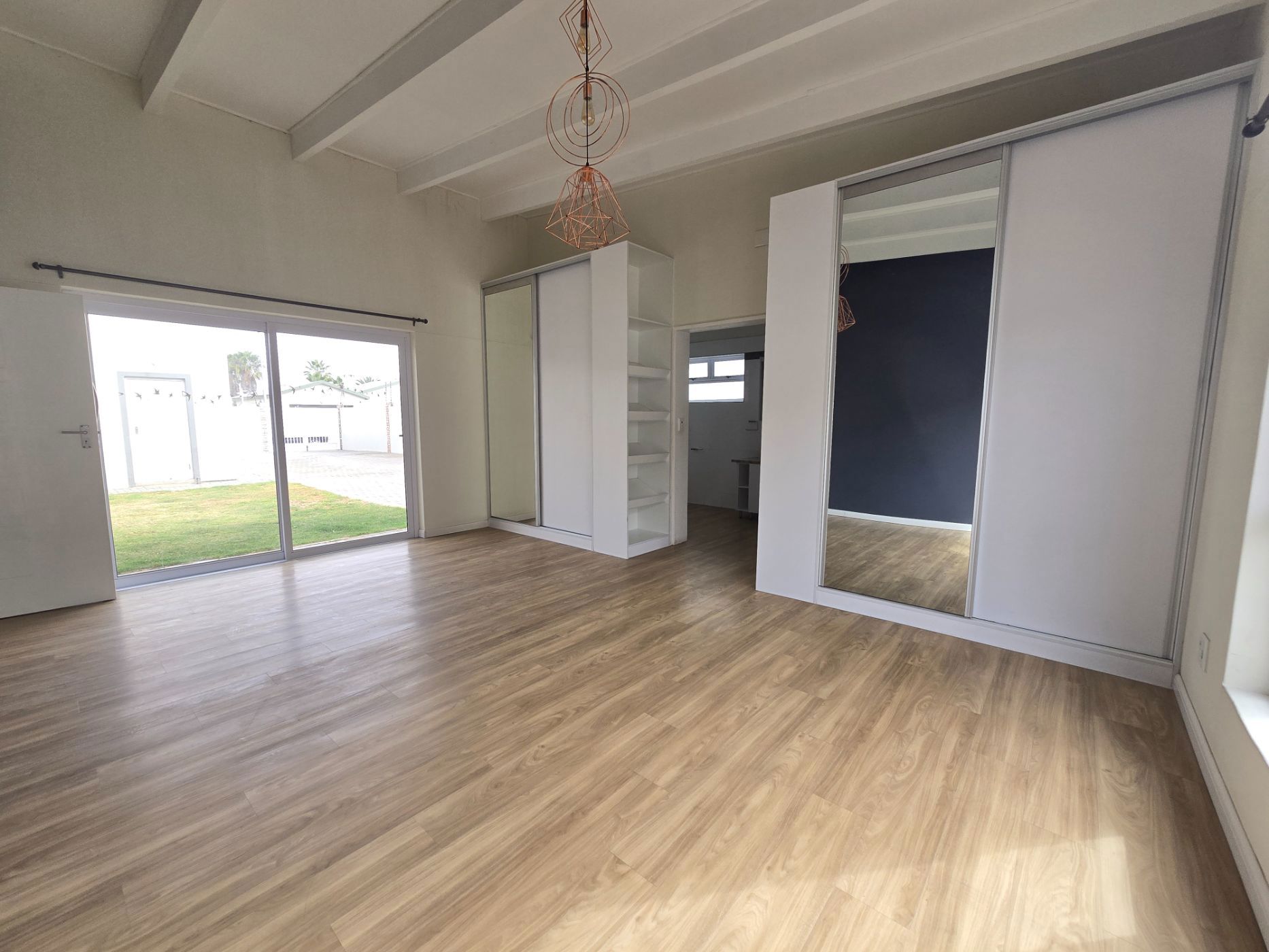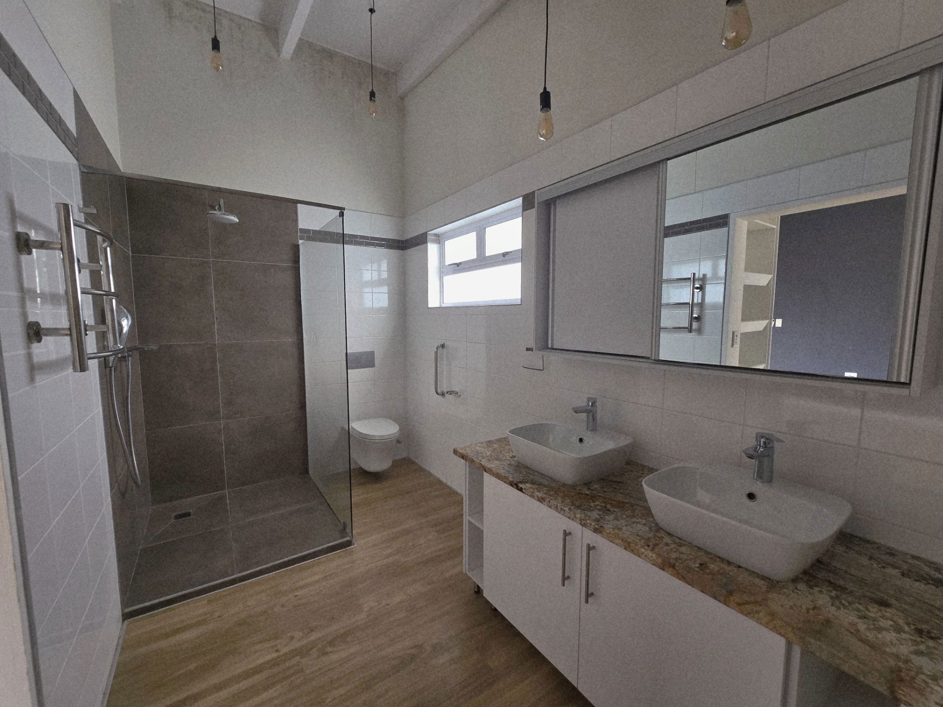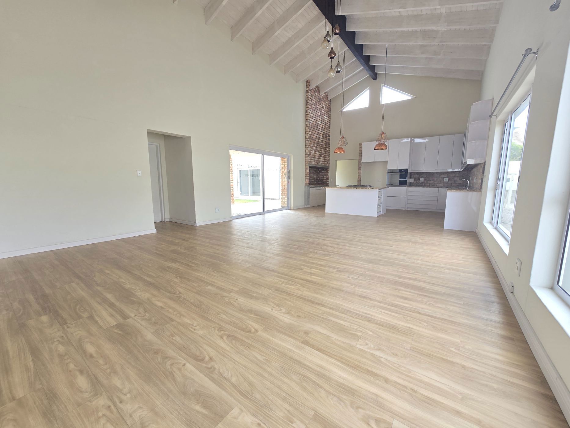 The sleek, contemporary layout flows effortlessly, offering a refined living experience. At the heart of the home lies a gourmet kitchen — a dream for any culinary enthusiast — featuring granite countertops, a gas hob, and an eye-level oven. A separate scullery and laundry room keep your space organized and clutter-free. The open-plan design connects the kitchen, living area, and BBQ space seamlessly, making it perfect for hosting friends or enjoying relaxed family gatherings.