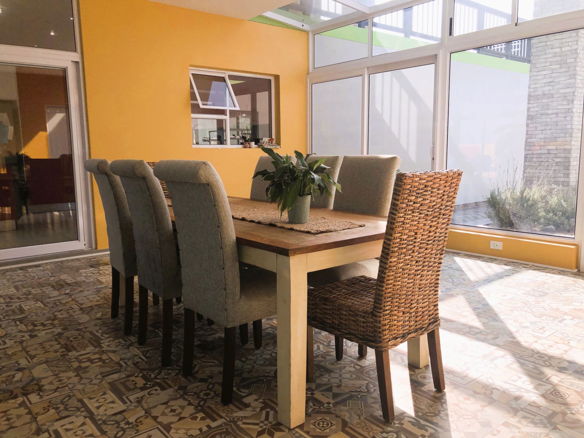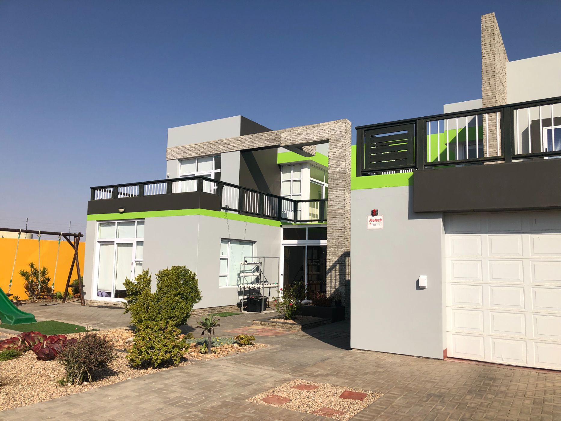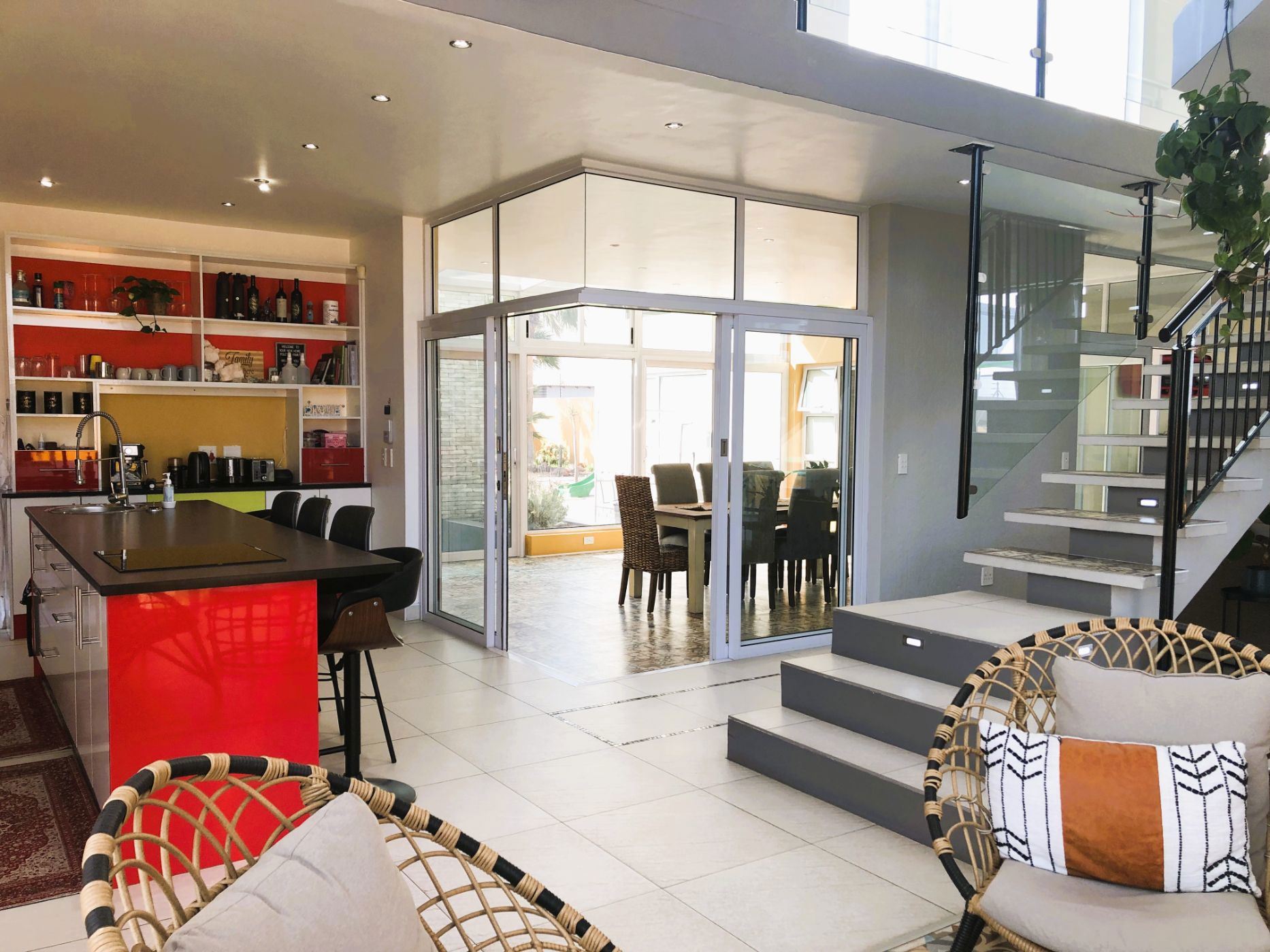 The ground floor is designed for both comfort and entertaining, featuring an open-plan layout with a sleek, colourful kitchen and scullery, two inviting living areas, and a bright dining space surrounded by natural light. A stylish bar area makes this home perfect for hosting family and friends.