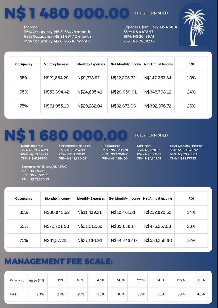 Perfect stay handles bookings, guest services and maintenance with Swakopmund averages at 65% occupancy.