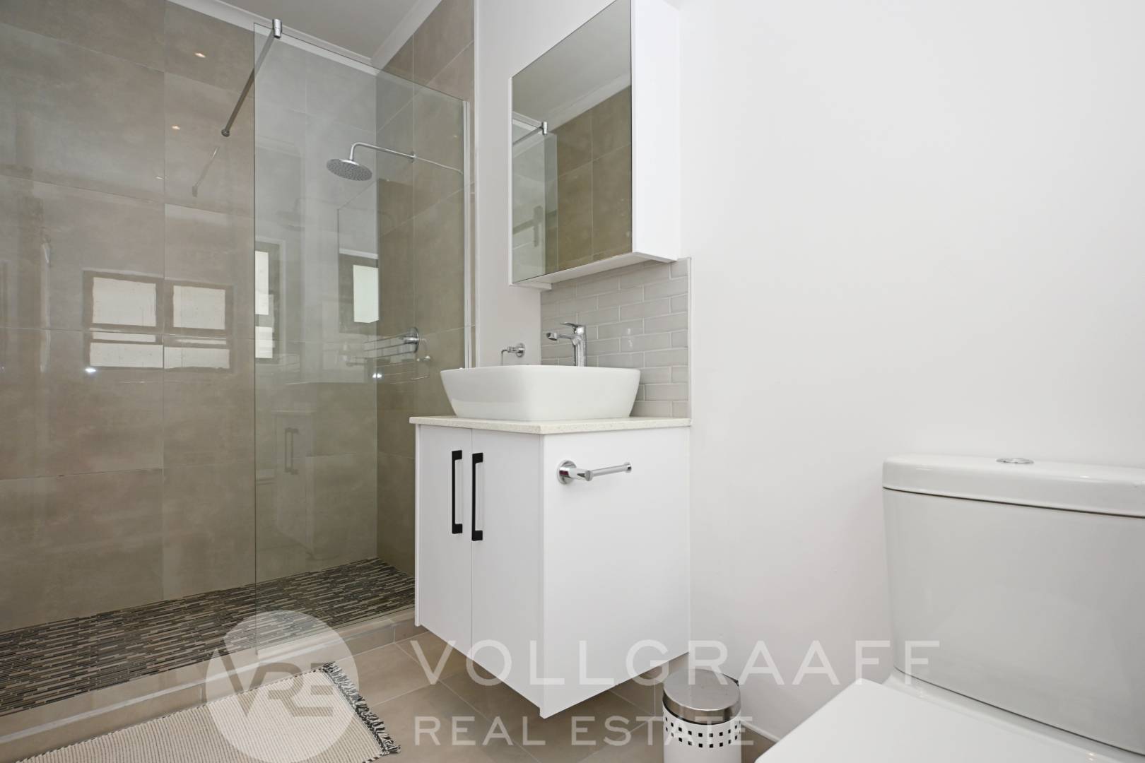 The ground floor offers an open-plan kitchen, dining, and living area, creating a comfortable and functional living space. Sliding doors from the living room lead to a private courtyard.