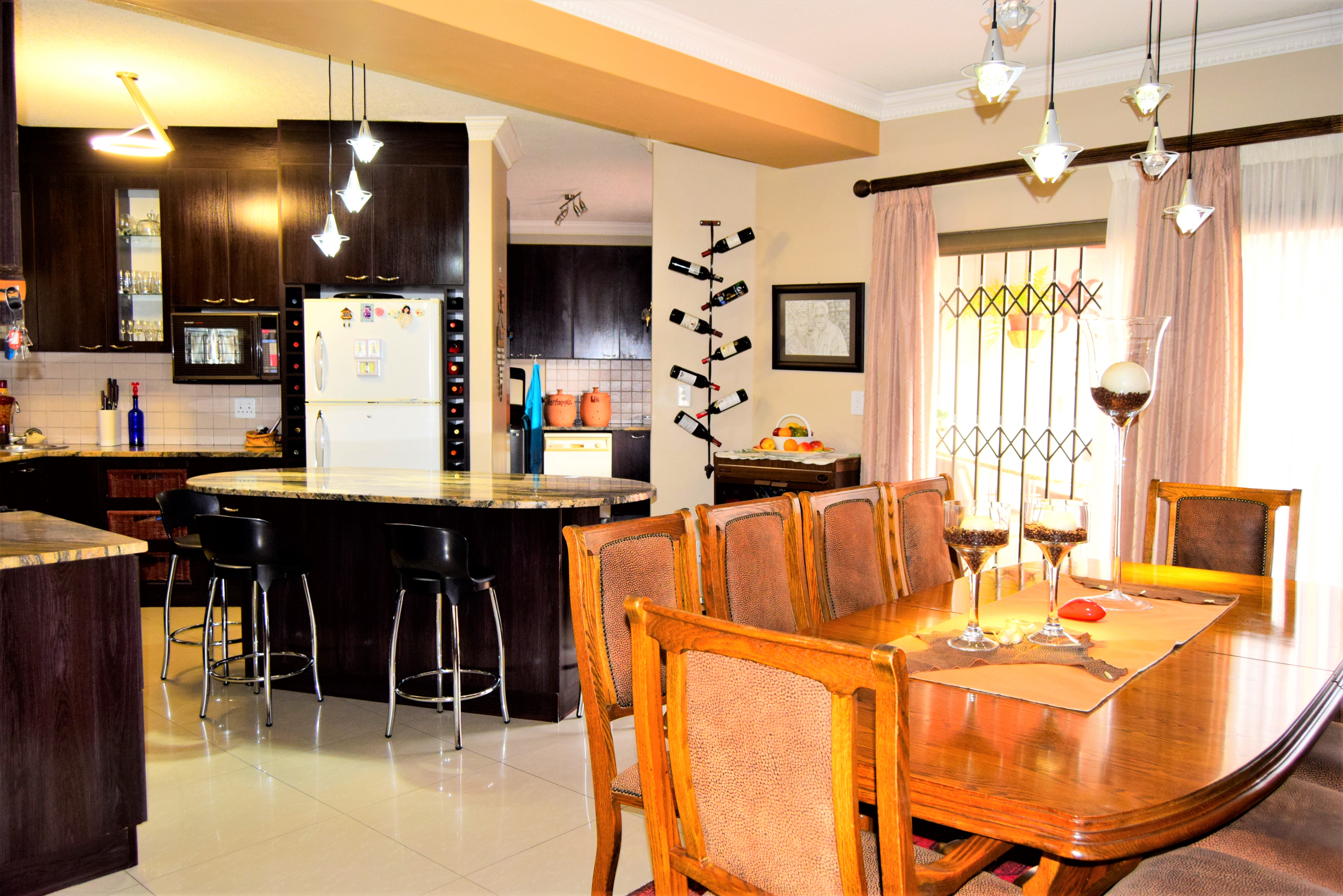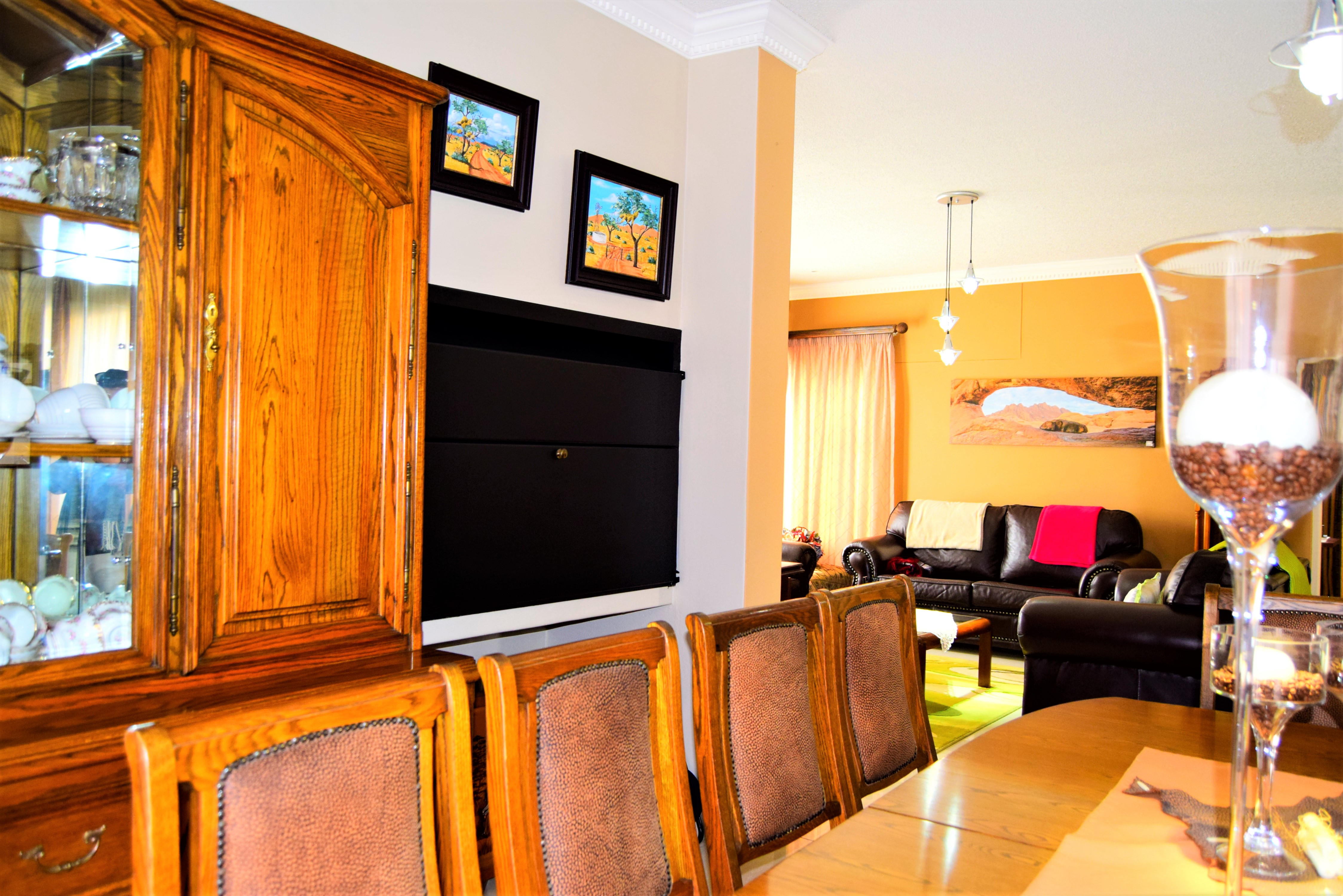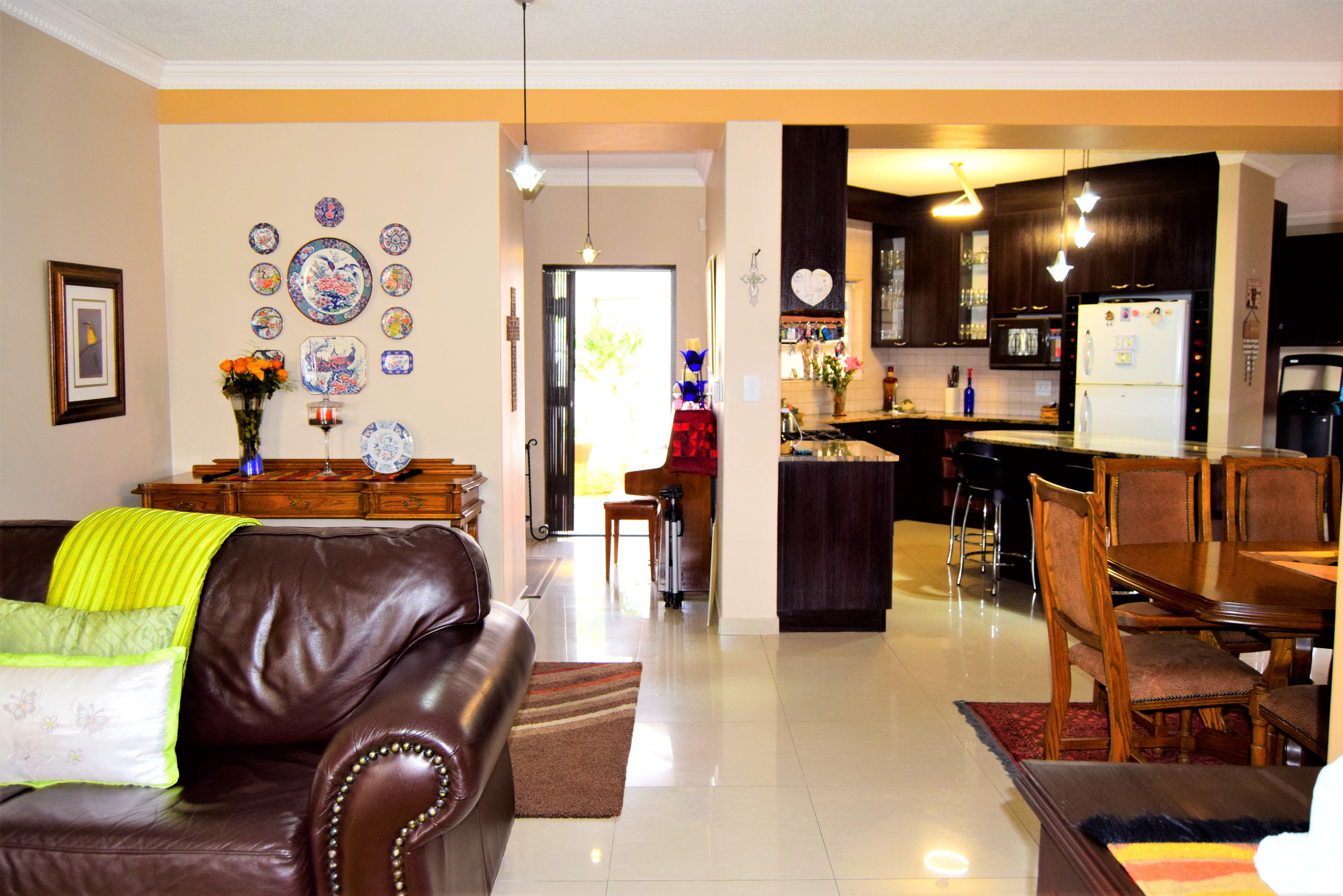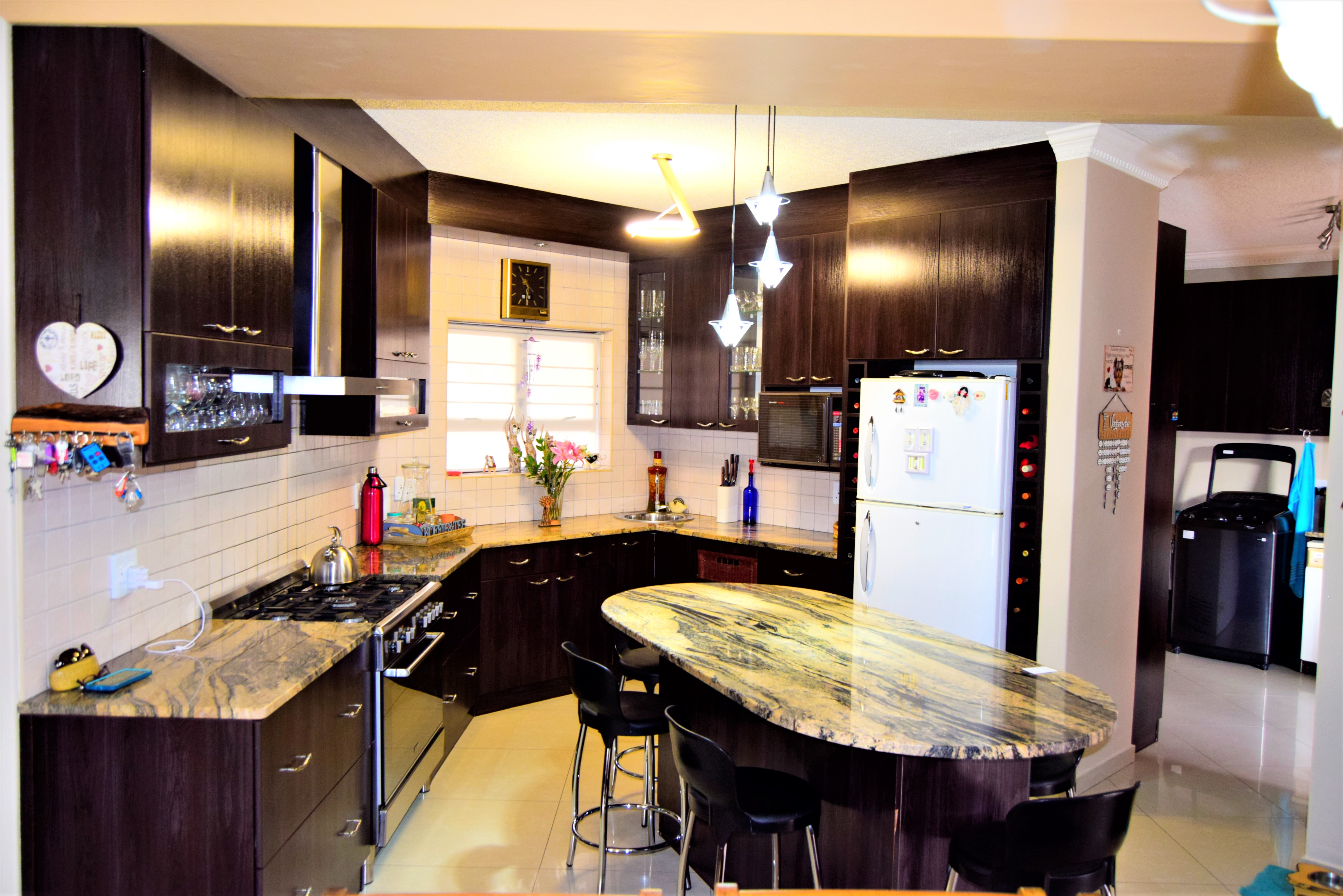 Open Plan Living areas include a TV room and Dining Room with indoor BBQ. The modern Kitchen with granite tops & island is equipped with a Defy Gas stove with extractor hub and electric oven.