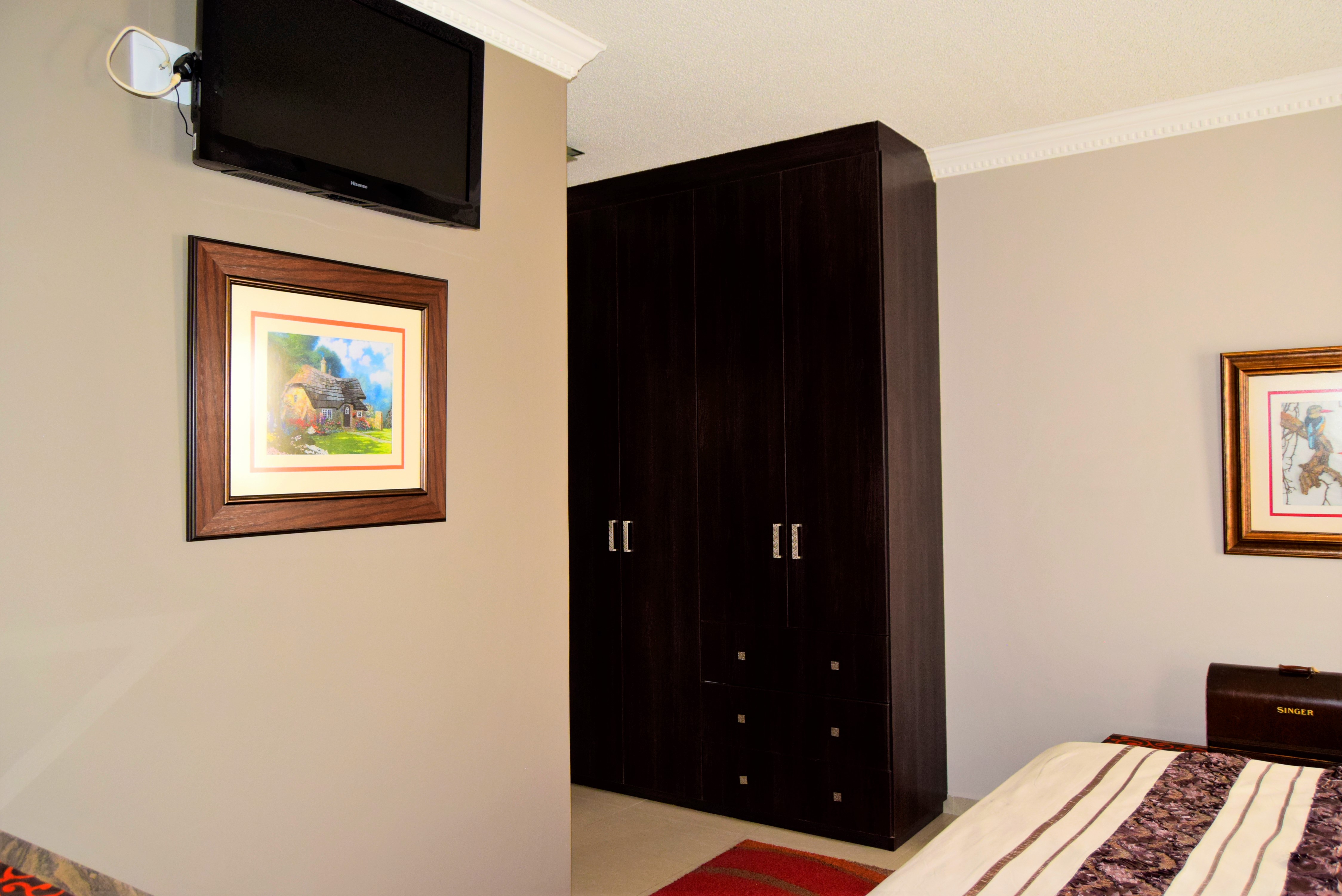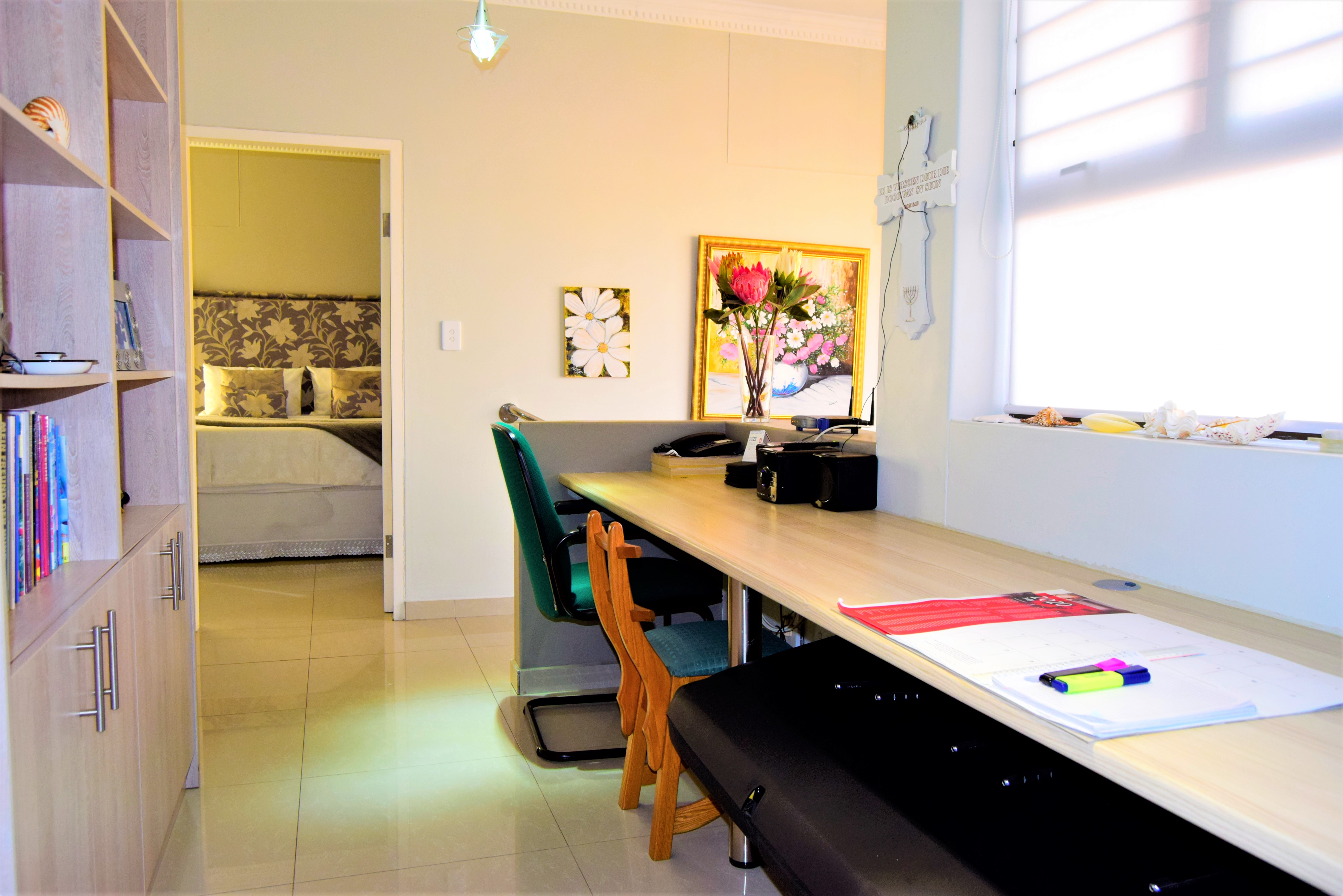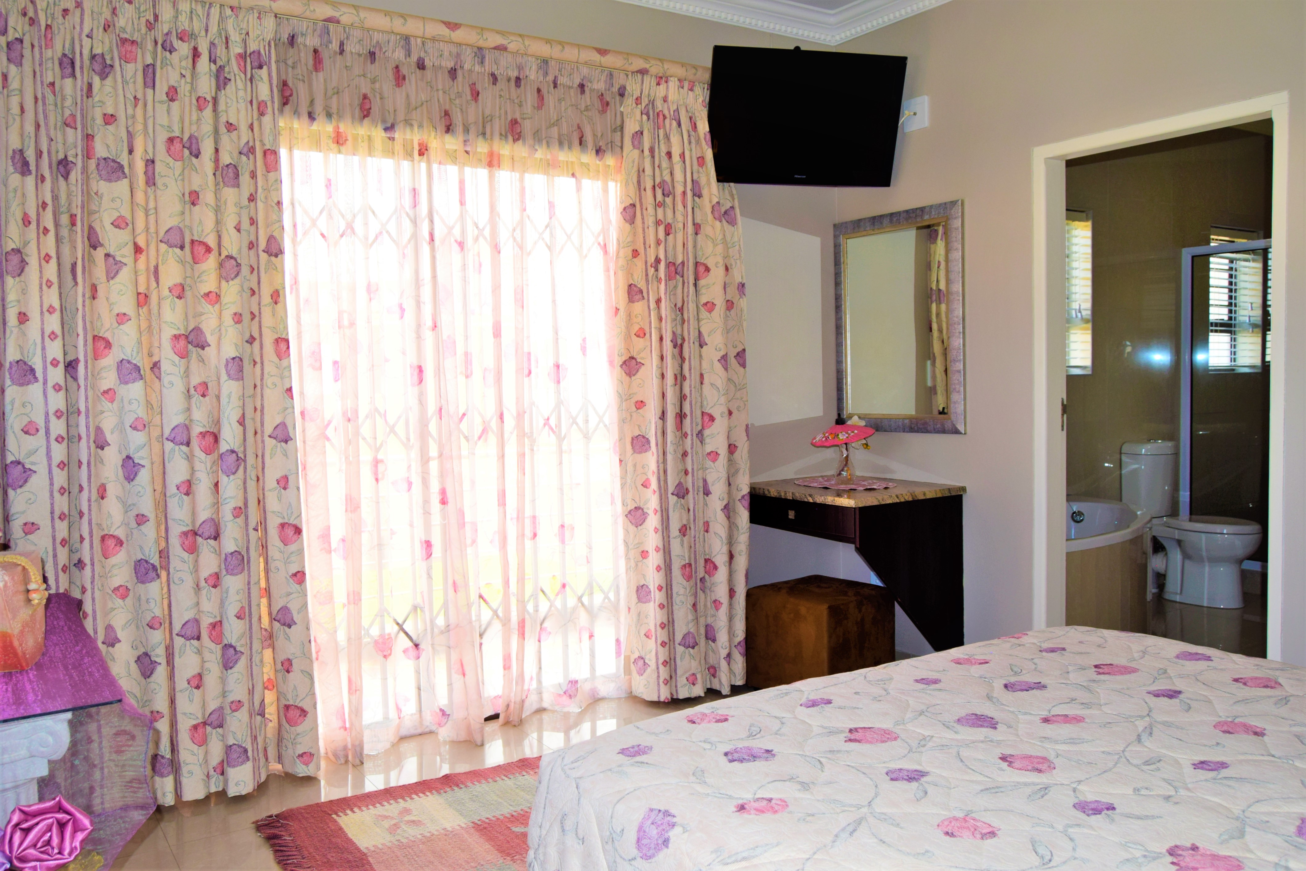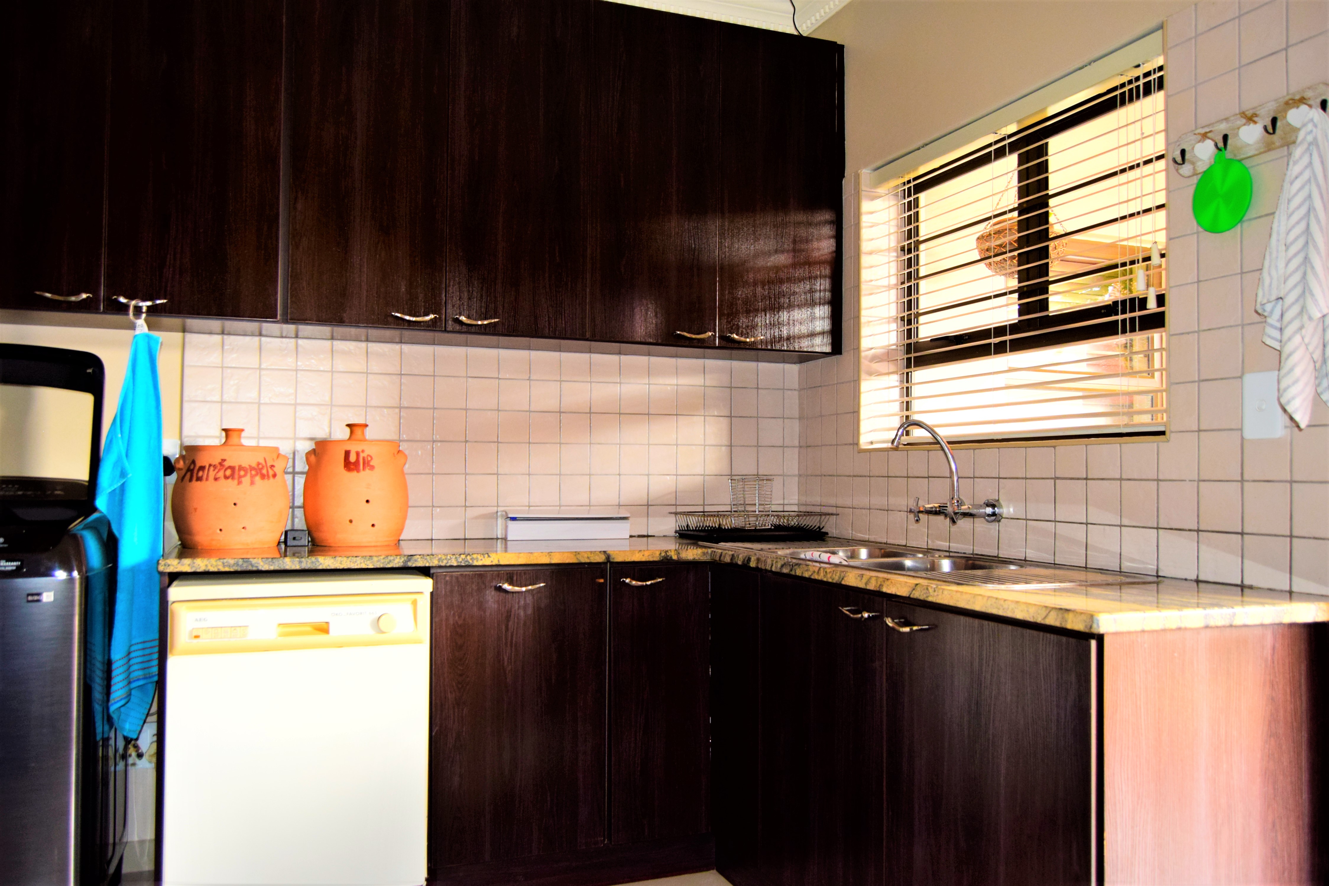 Open Plan Living areas include a TV room and Dining Room with indoor BBQ. The modern Kitchen with granite tops & island is equipped with a Defy Gas stove with extractor hub and electric oven.