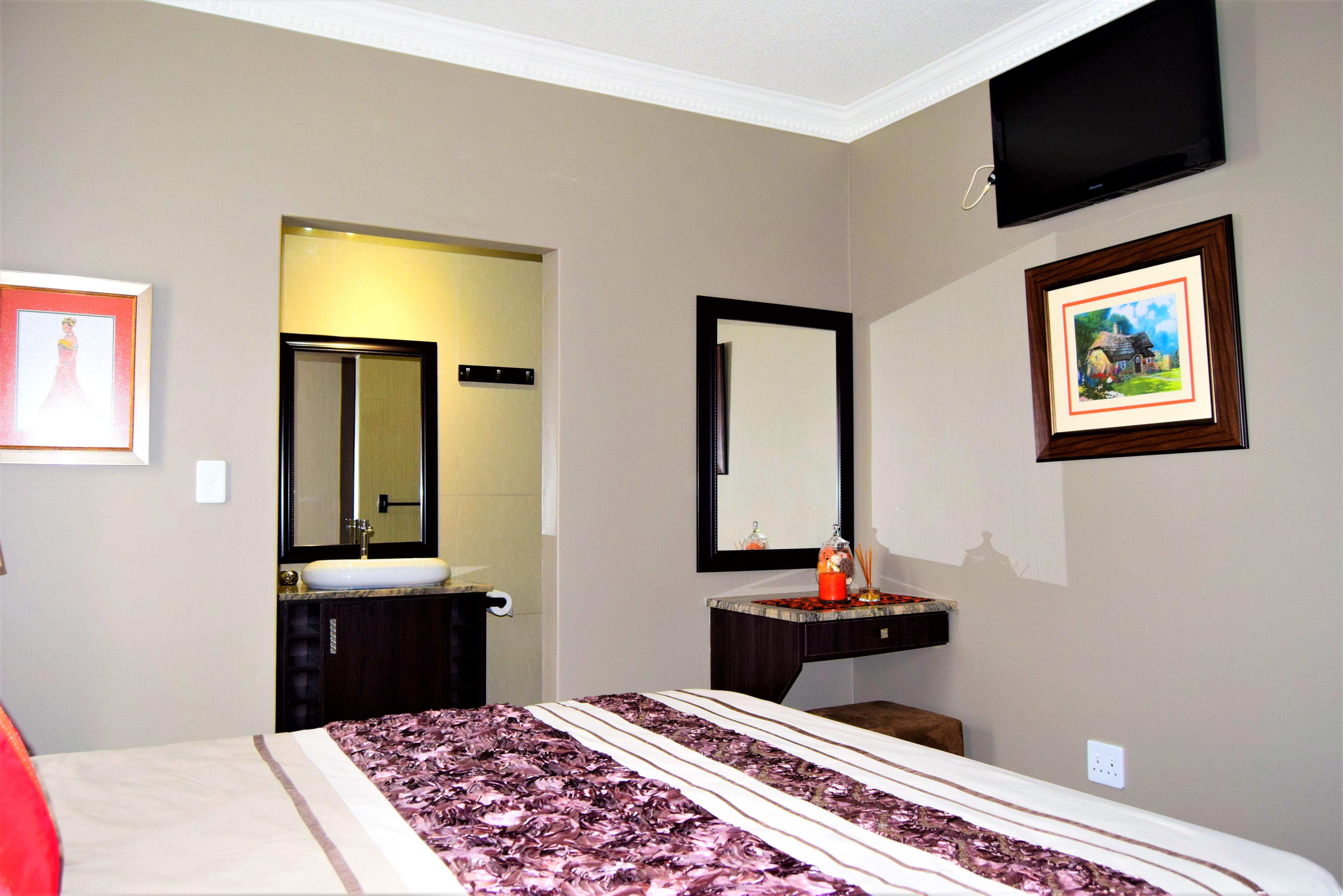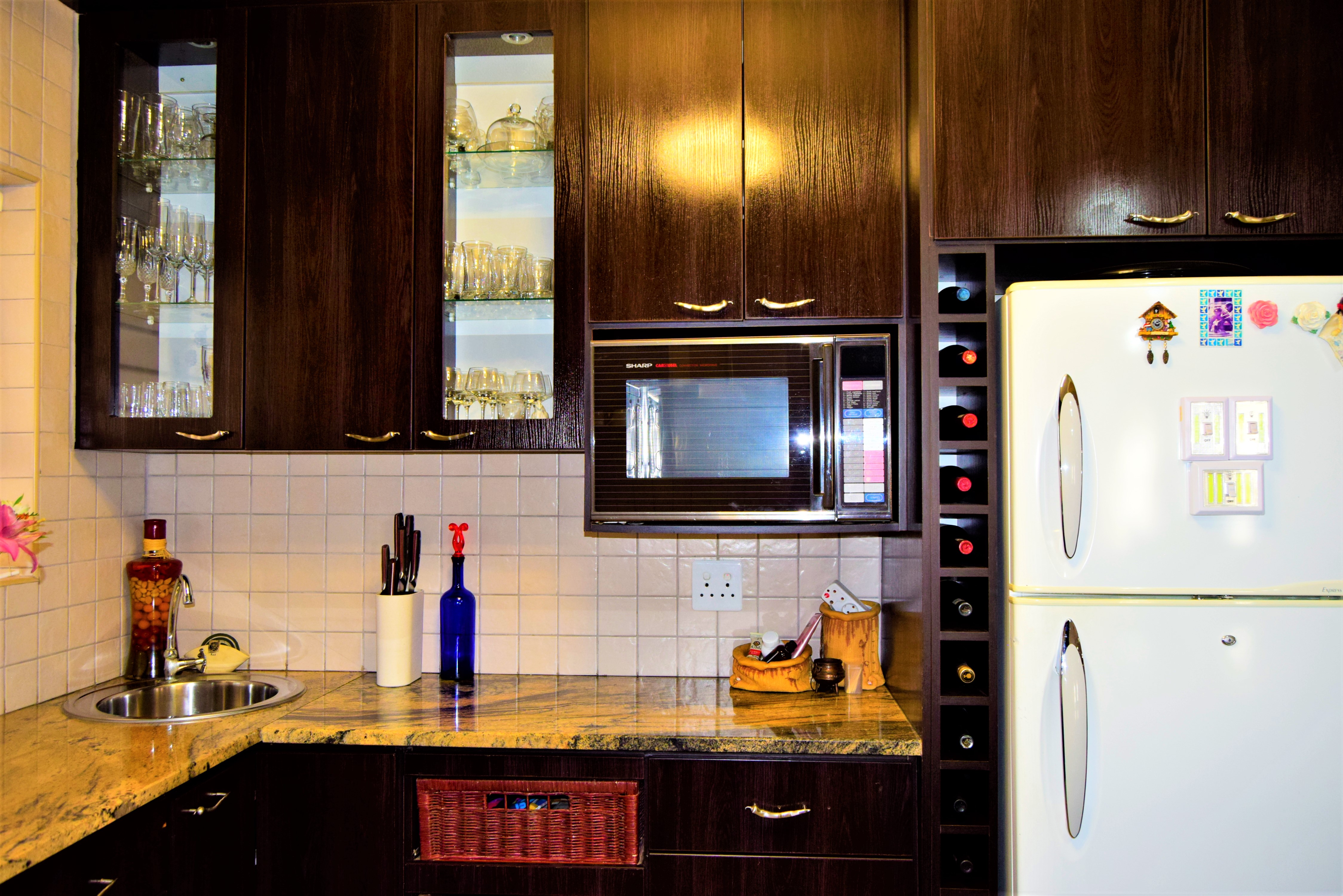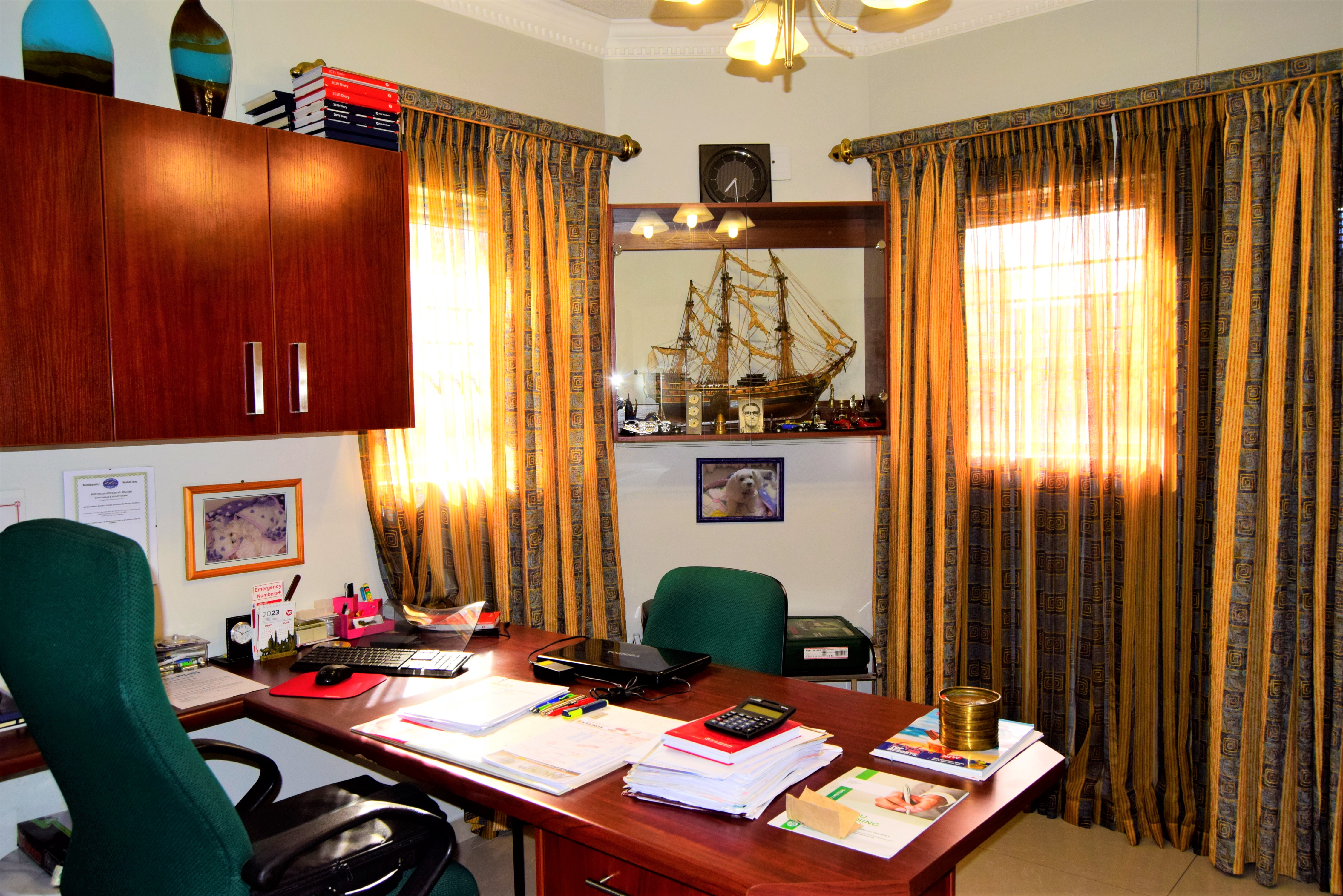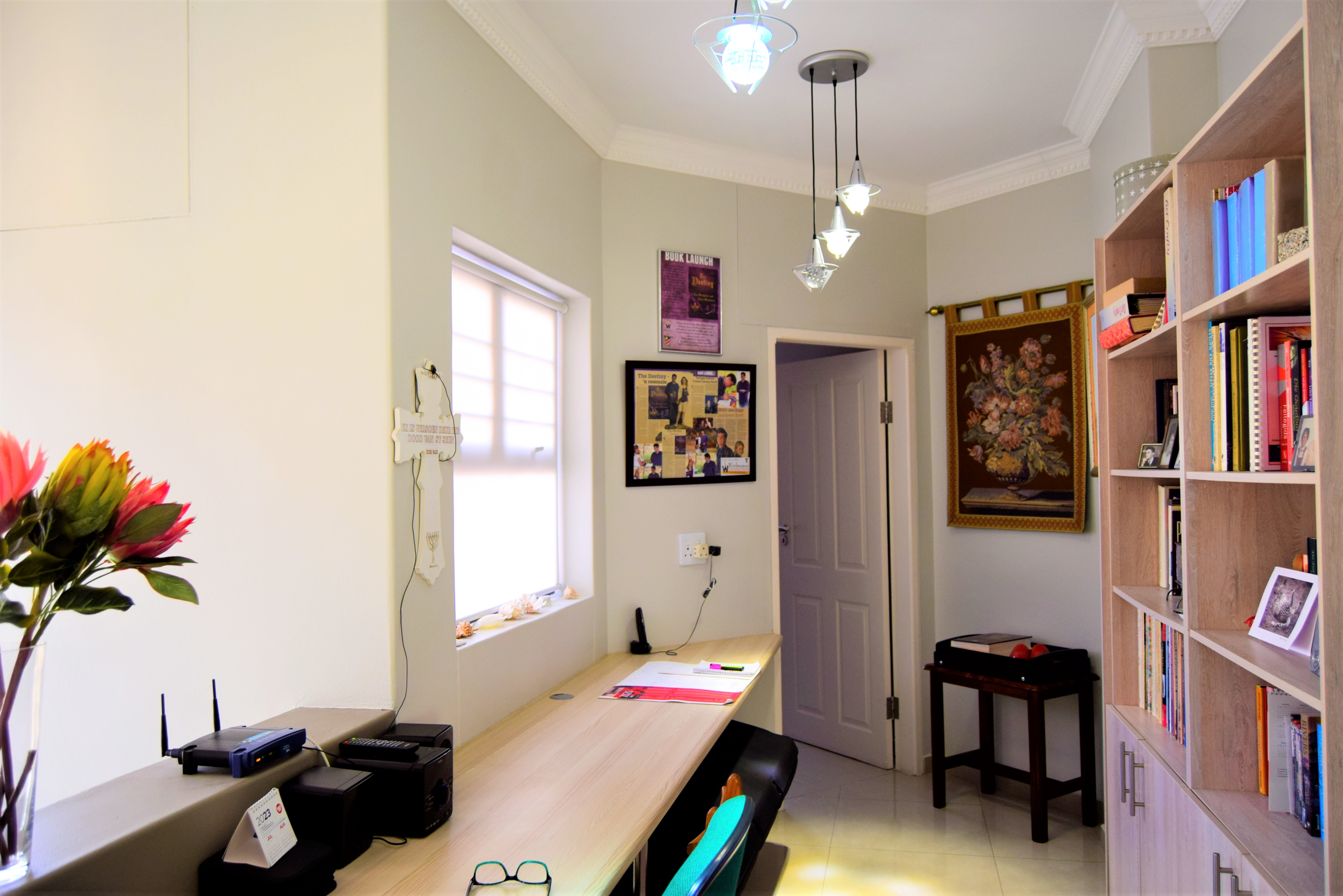 Open Plan Living areas include a TV room and Dining Room with indoor BBQ. The modern Kitchen with granite tops & island is equipped with a Defy Gas stove with extractor hub and electric oven.