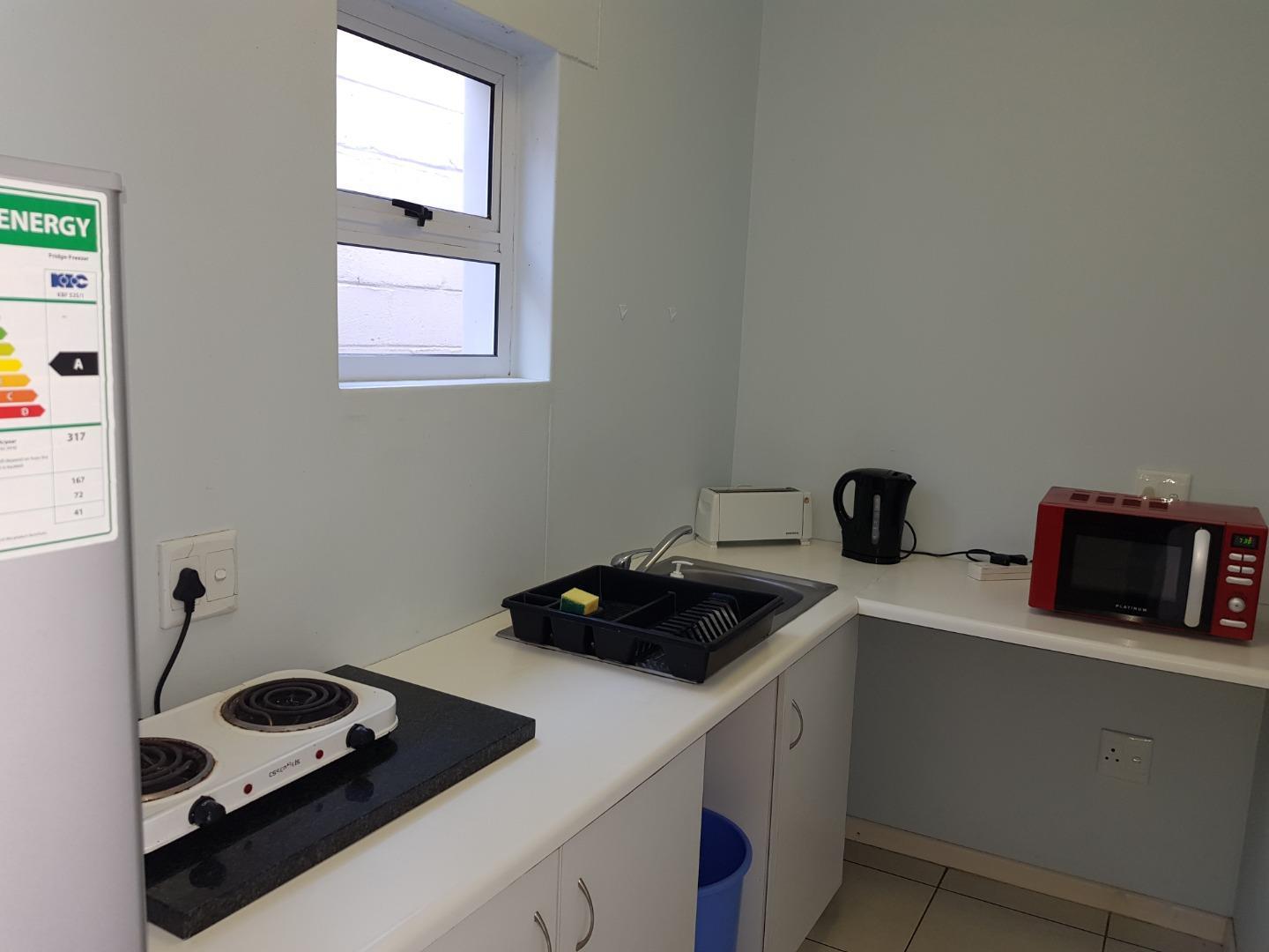 Adjacent to the main house is a separate building that houses self-catering accommodations. This double-story building comprises four units. The ground floor includes a cottage-style unit with its own bedroom, lounge, kitchen, and bathroom. An apartment-type unit with similar amenities is also situated on the ground floor. Furthermore, there is a garage/storage area that can be converted into an additional apartment. The outside braai area and open parking space for 5-7 cars behind gates add convenience and flexibility to the property.