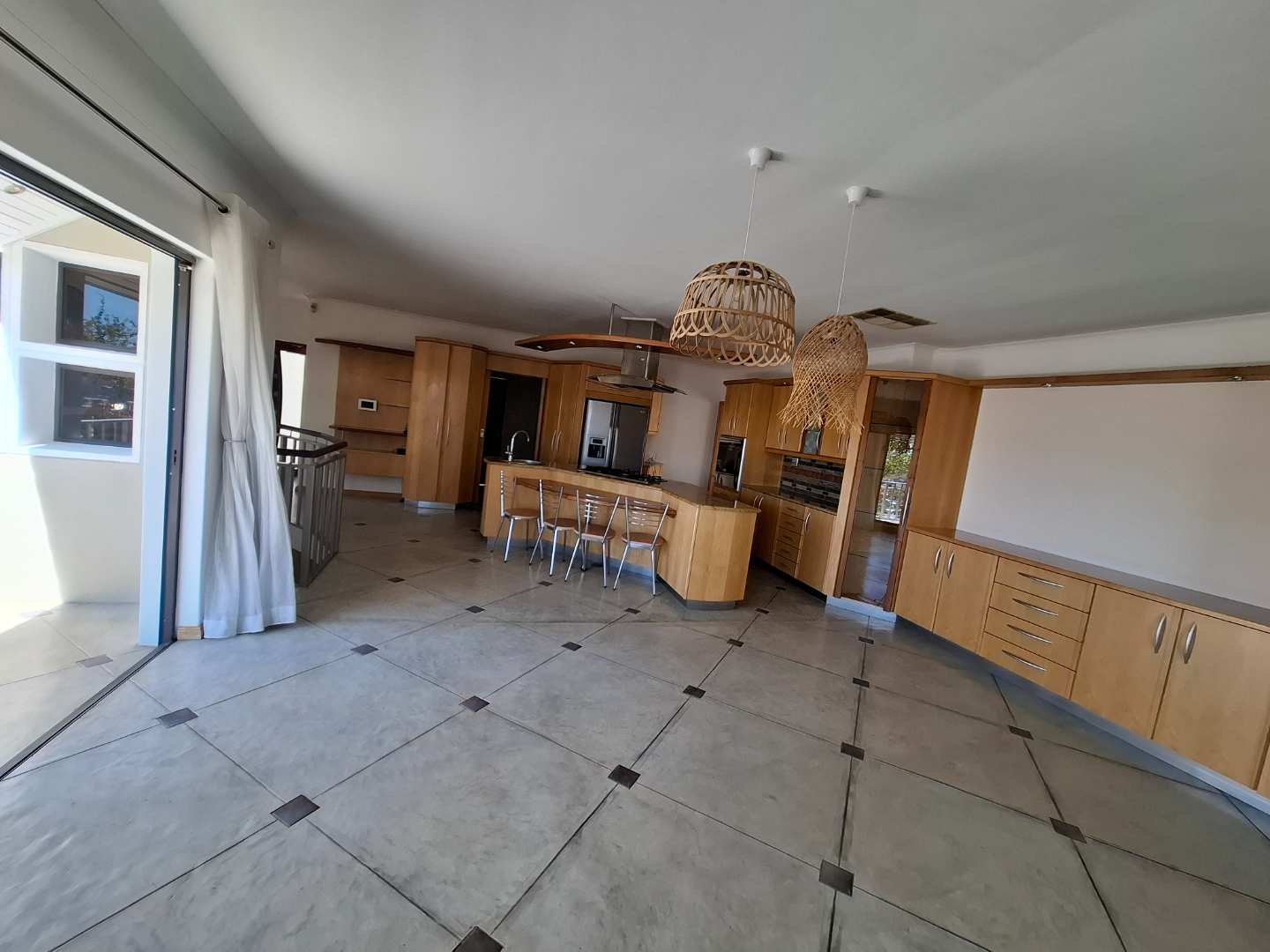 The open-plan living and dining areas flow effortlessly onto a magnificent balcony — the perfect spot to unwind and watch the city lights come alive at sunset. The designer kitchen is a dream, featuring exquisite carpentry, granite countertops, a walk-in cool room and a separate scullery.