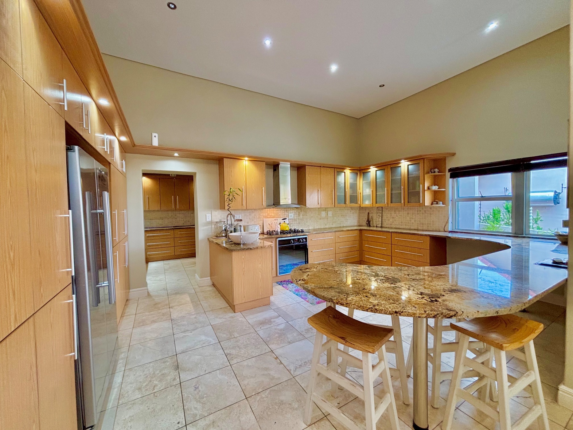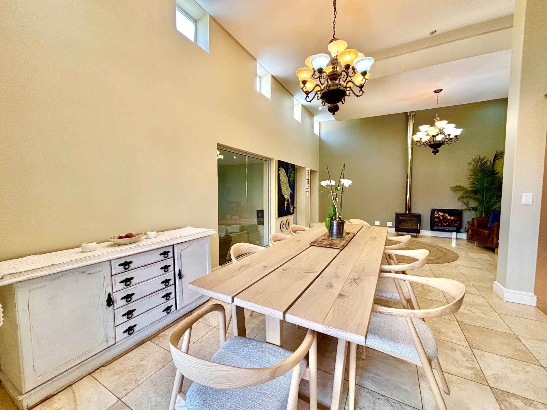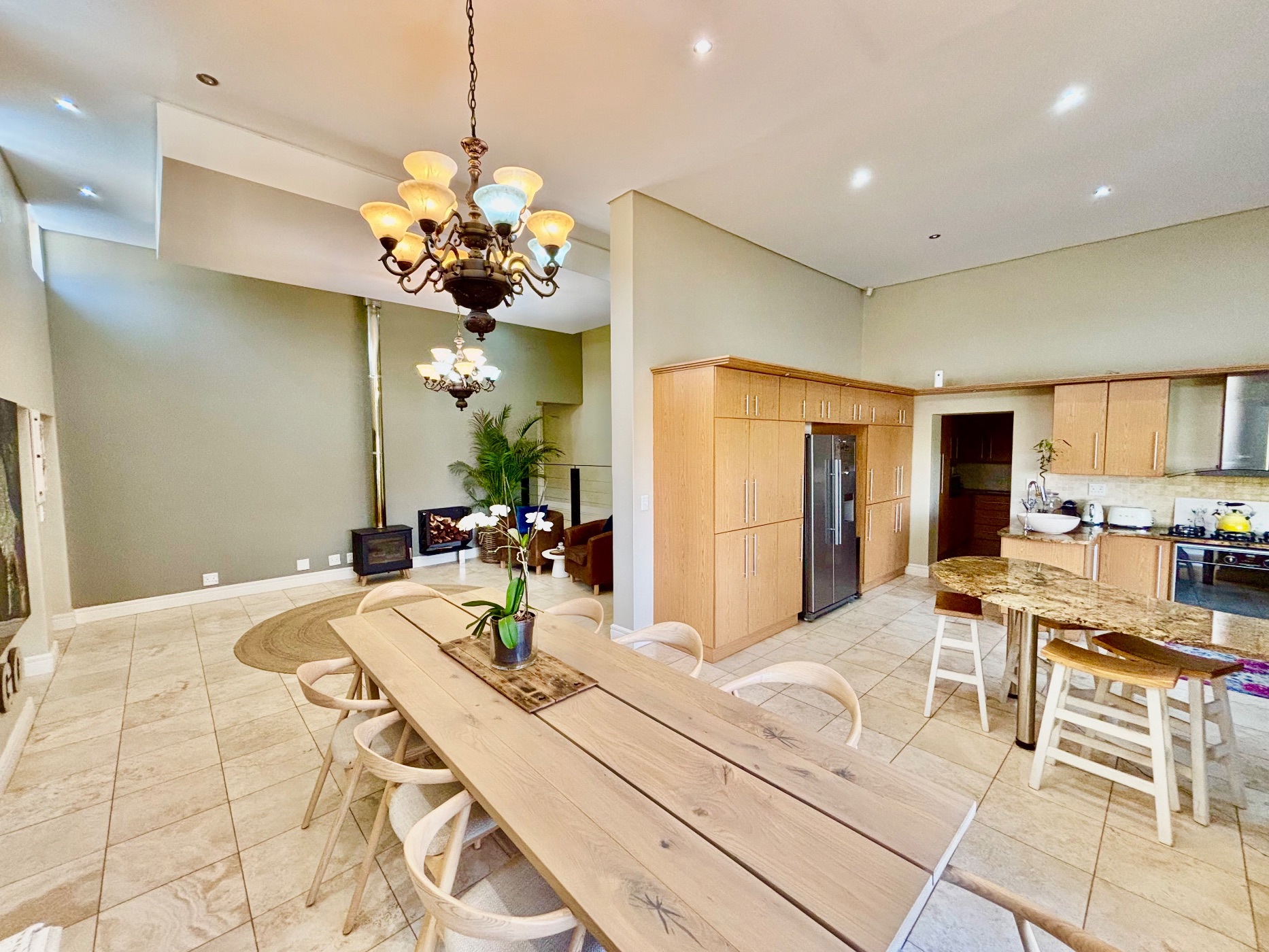 Step into serenity with this beautifully appointed 4-bedroom, 3-bathroom home designed for comfort and style. The spacious open-plan living area features a cozy fireplace, perfect for relaxing evenings, while the gourmet kitchen—complete with scenic views—will delight any home chef and a spacious scullery, separate laundry and a store room.