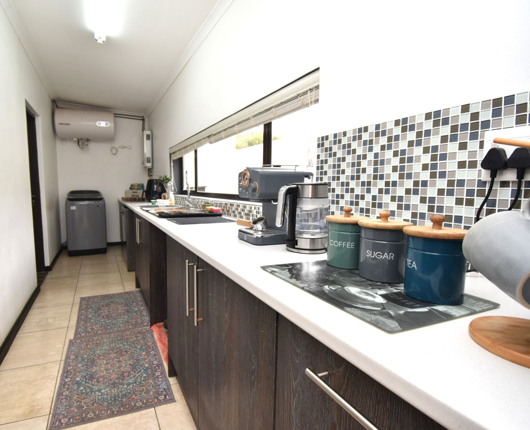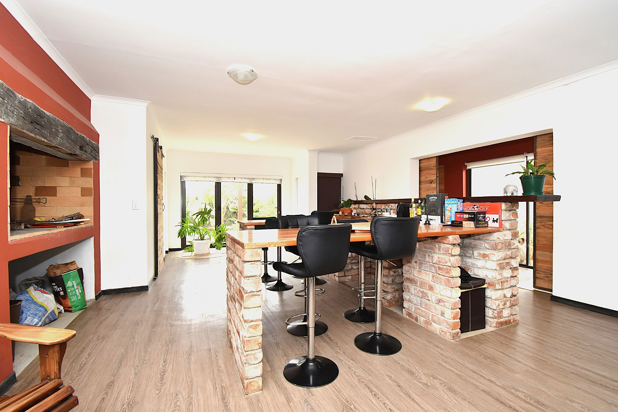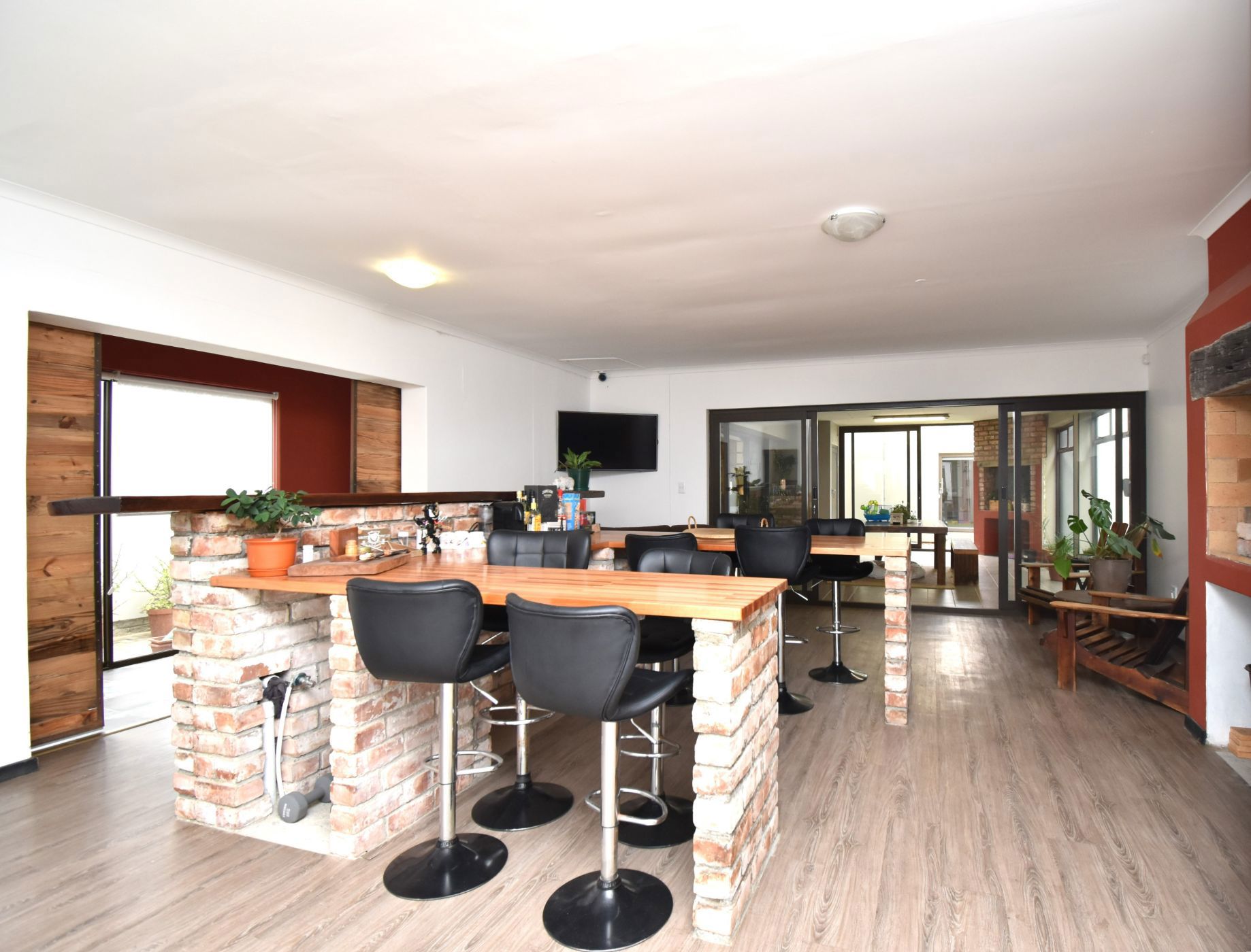Front entrance leads to spacious braai area with built in bar and stack doors