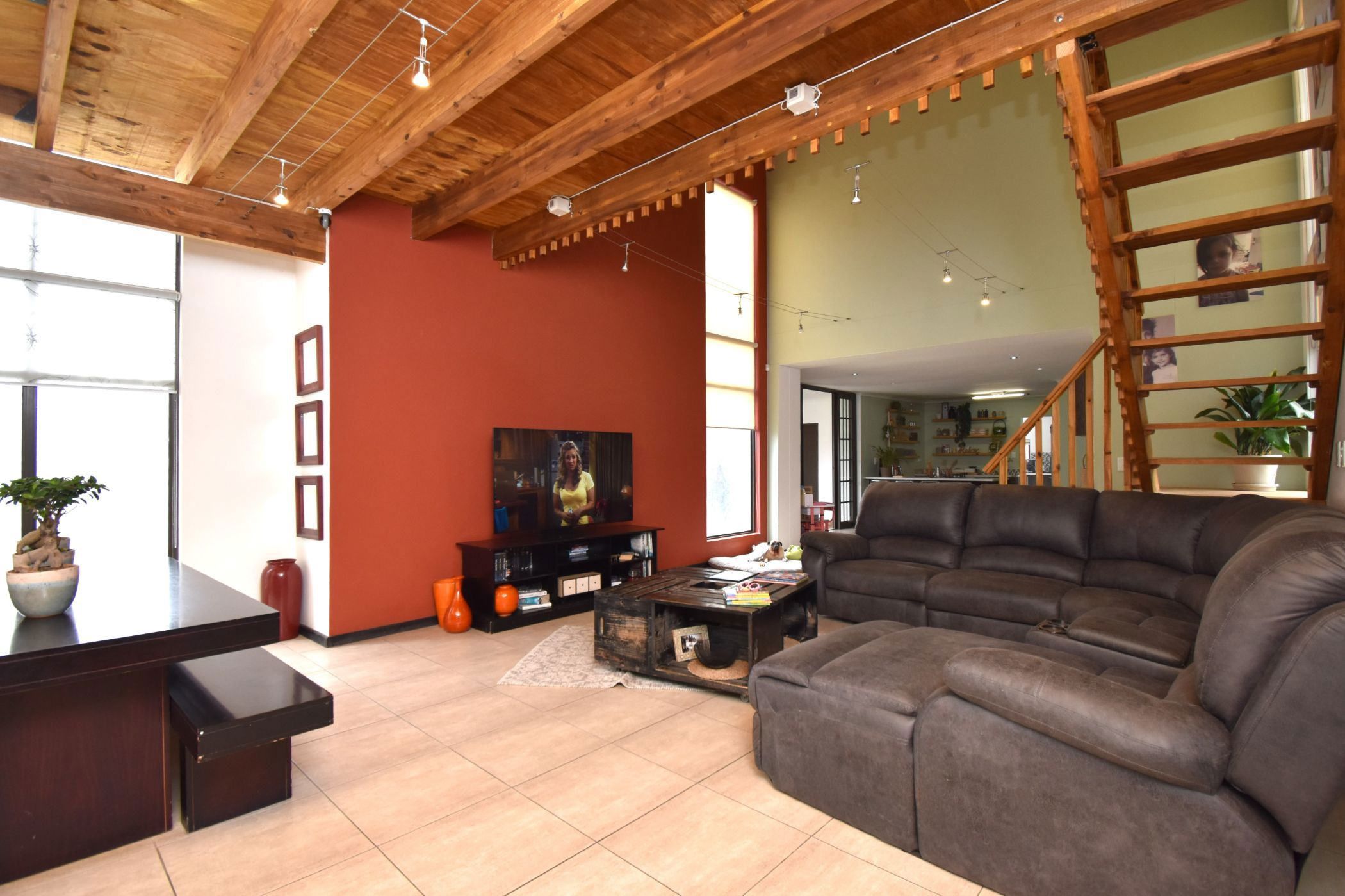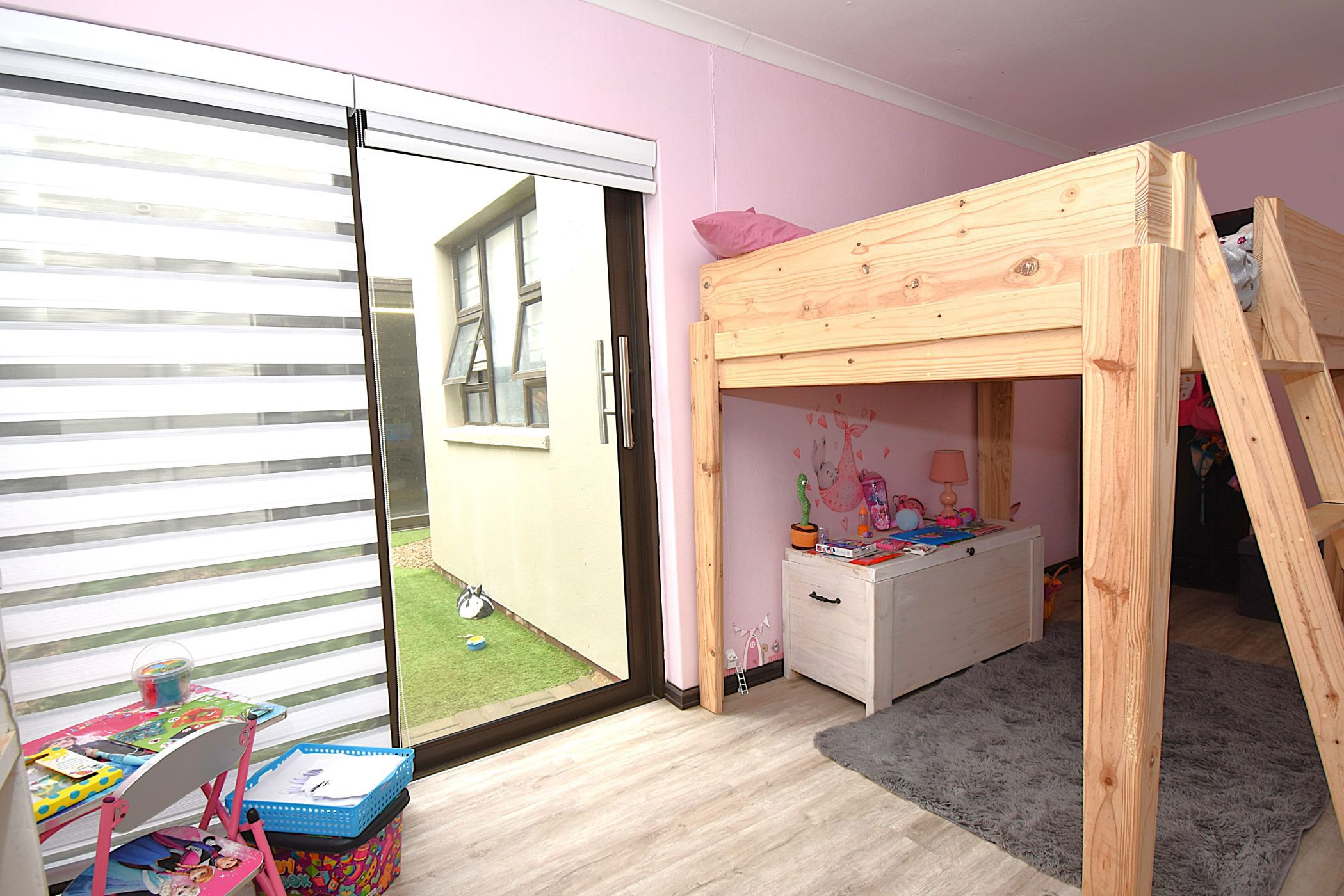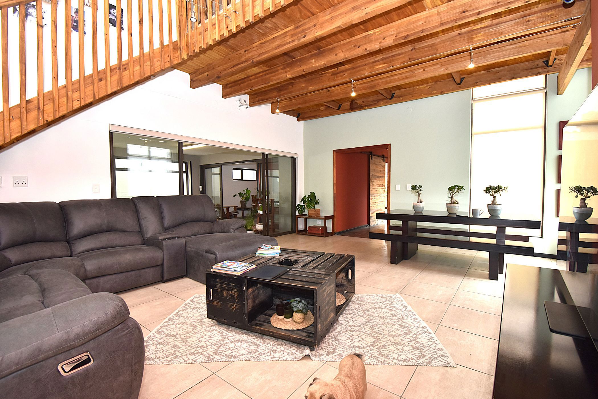 Front entrance leads to spacious braai area with built in bar and stack doors
