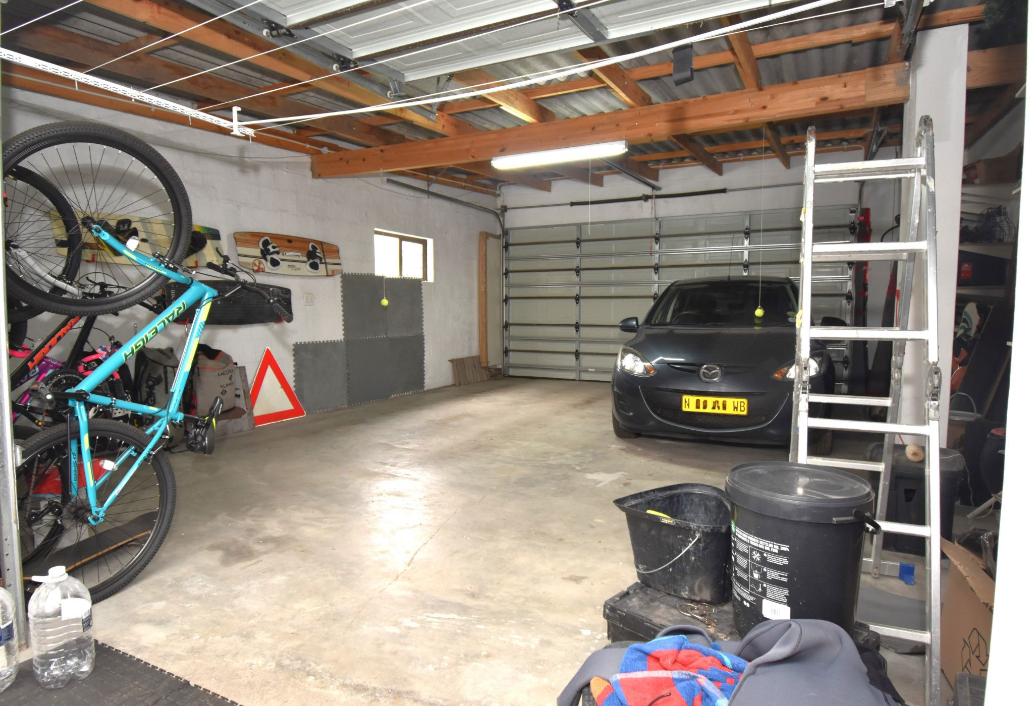 Double garage with loads of shelving and extra spacious storage space for canoes/quadbikes etc