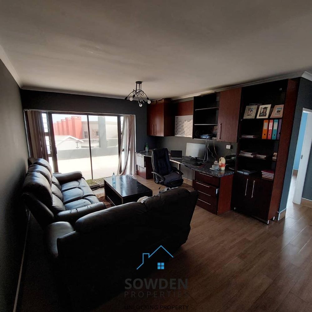 The heart of the home is its open-plan kitchen, dining, and lounge area, thoughtfully designed for connection and ease. The kitchen includes a handy scullery area for added functionality, while the built-in fireplace in the lounge corner adds charm and warmth to the home’s living space.