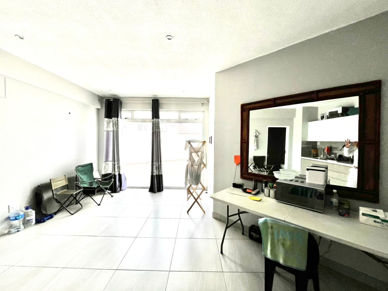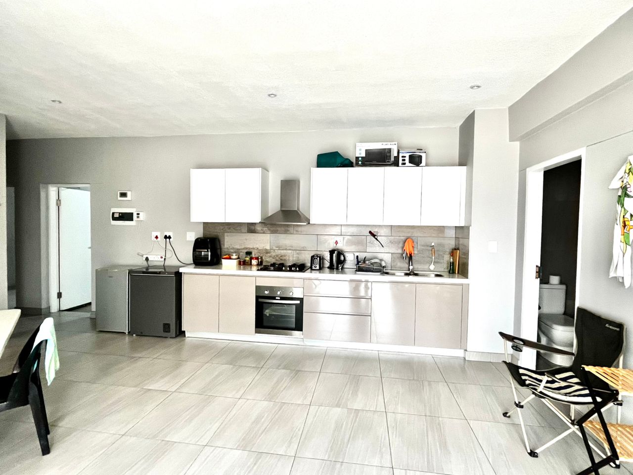 * Open-plan living and kitchen area with a modern, functional layout.