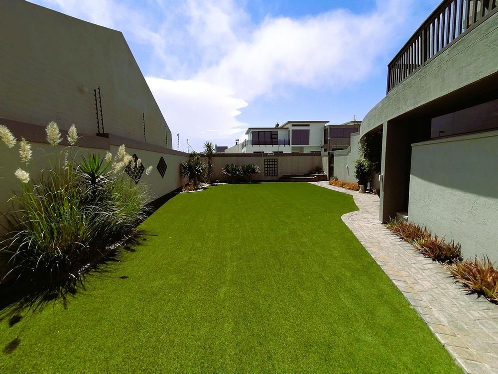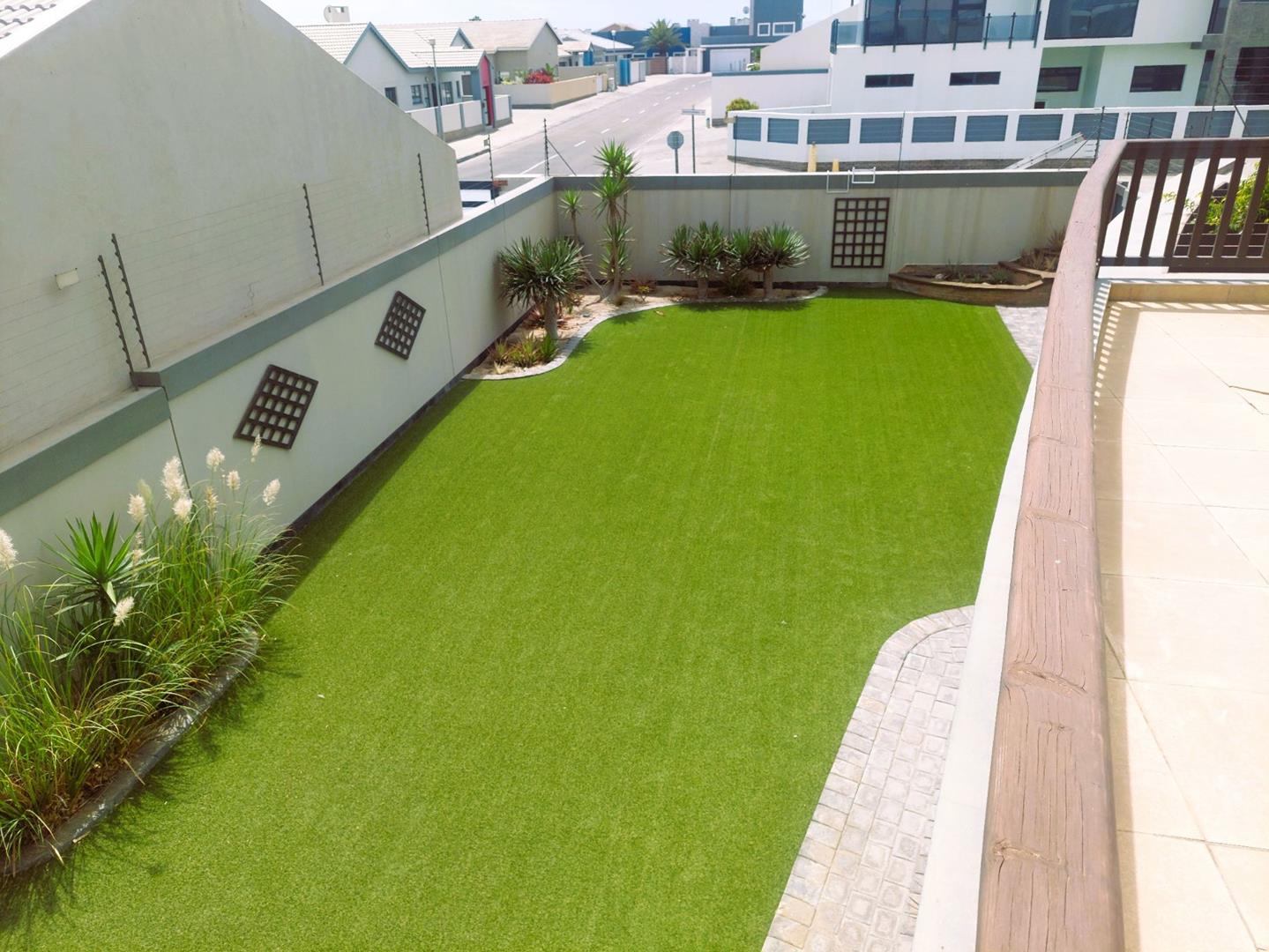 Low-Maintenance Garden: Synthetic lawn ensures a pristine outdoor space year-round.