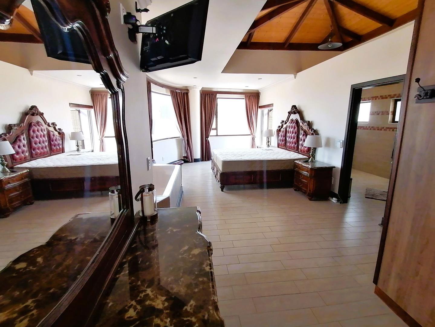 Luxurious Main Suite: Wake up to sea views in a spacious sanctuary featuring a private bathroom, walk-in dresser, and space for a personal gym.