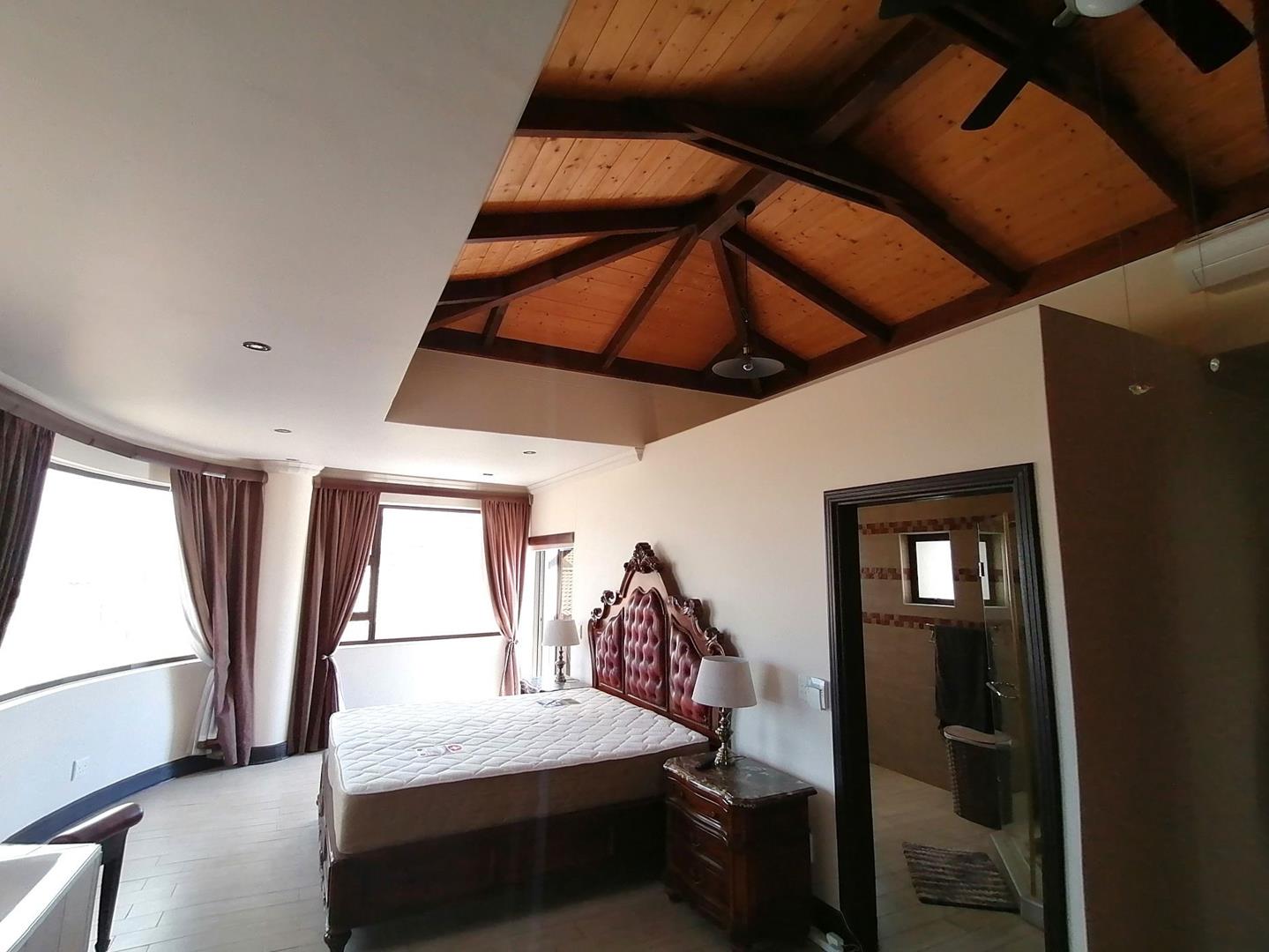Timeless Craftsmanship: Exposed wooden beams and high ceilings add charm and character.
