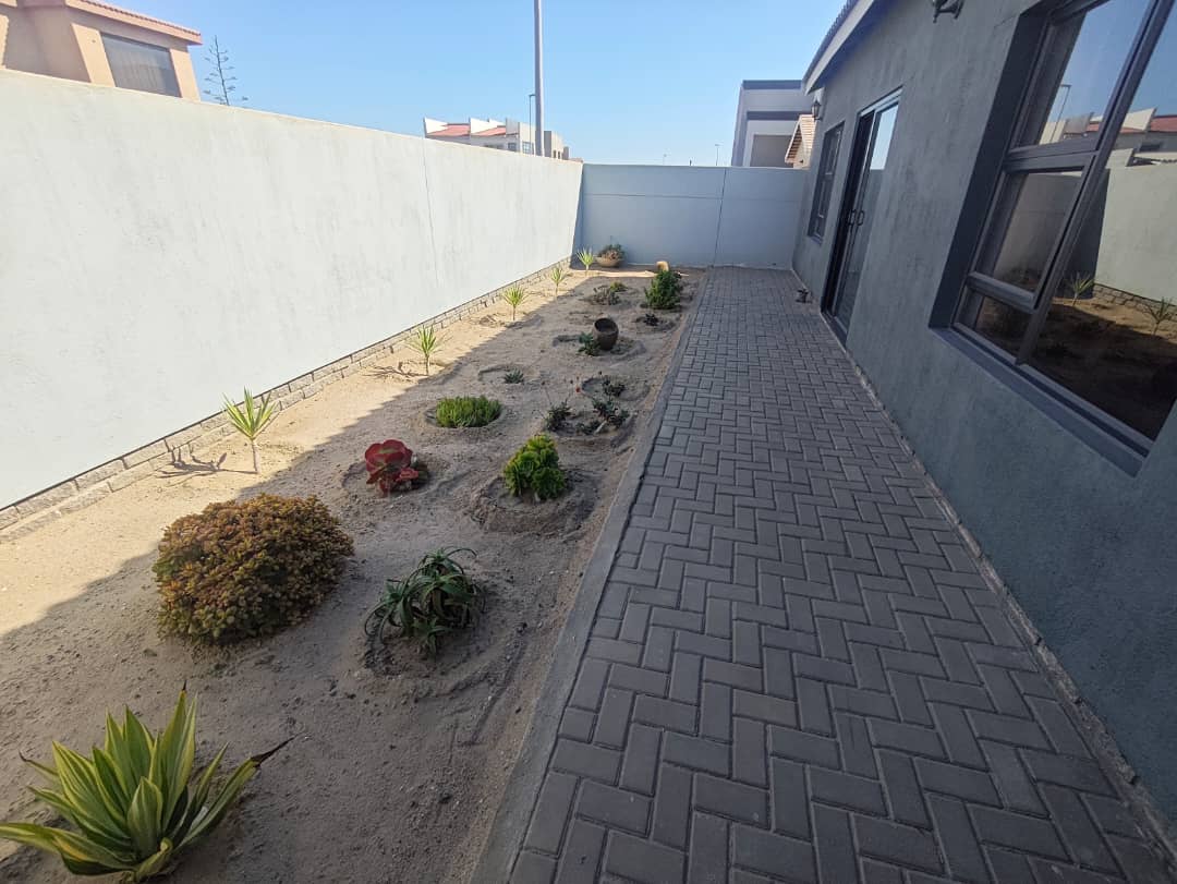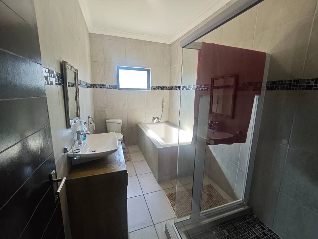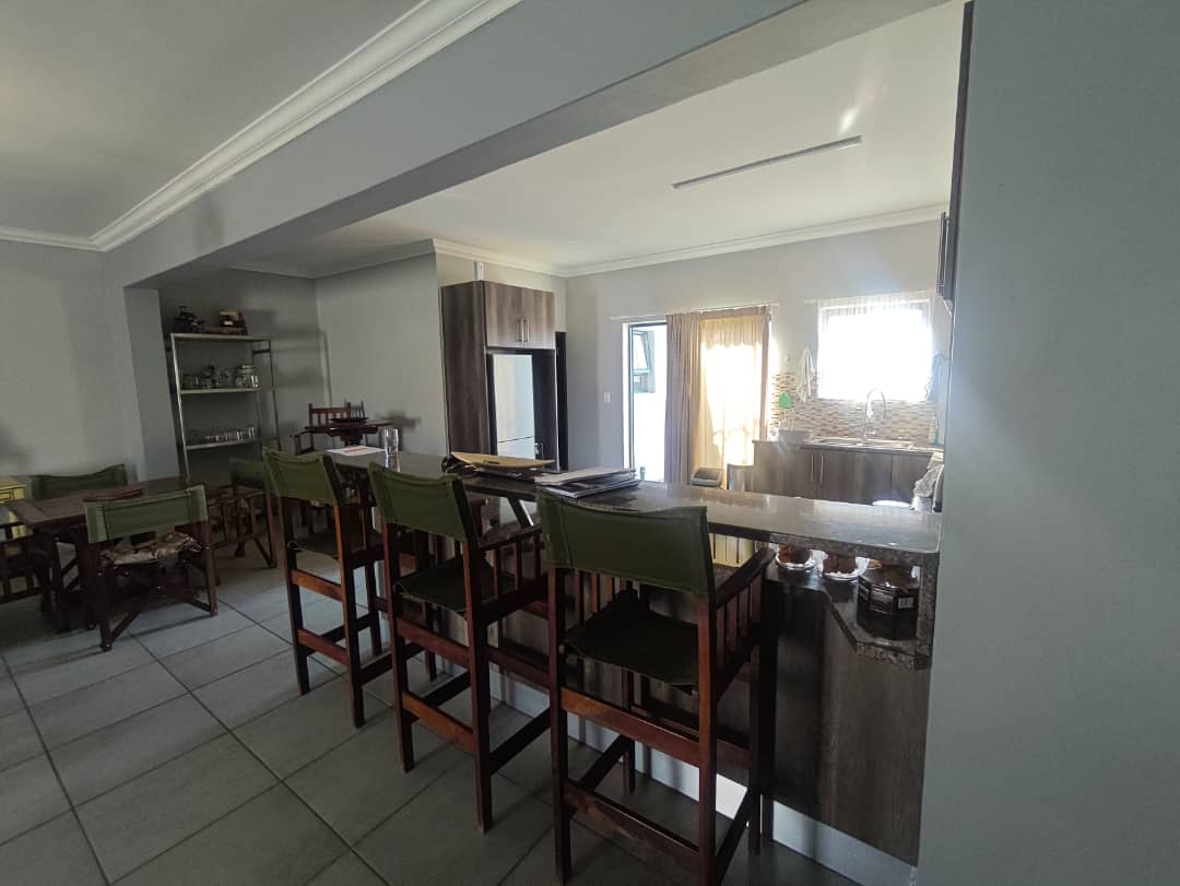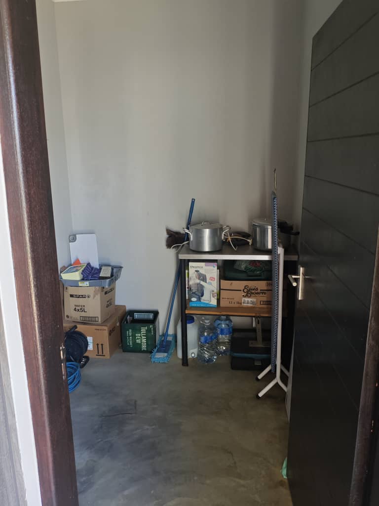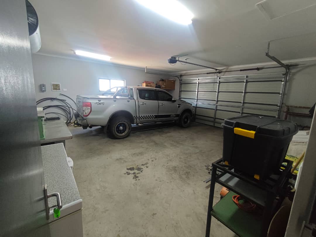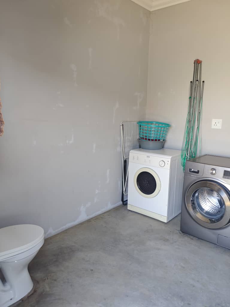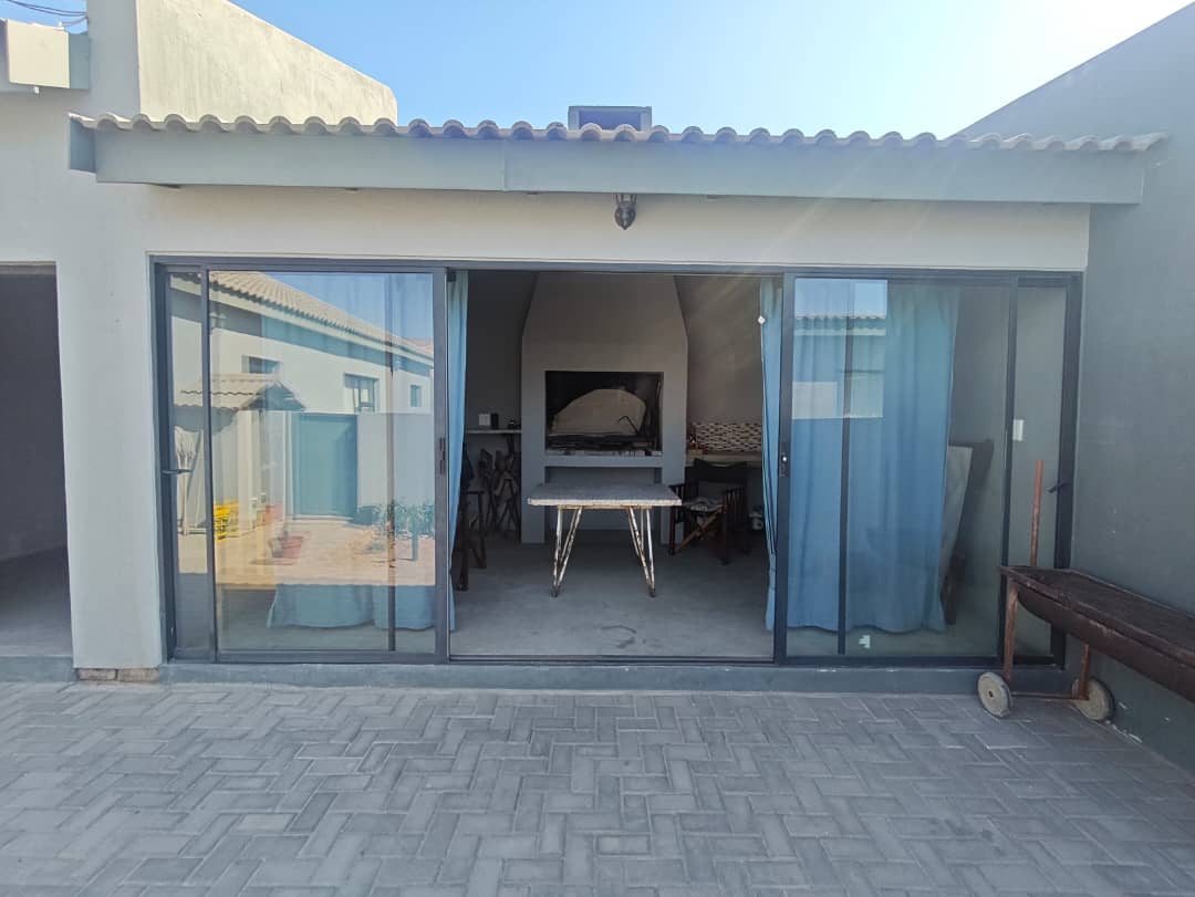 This home boasts two spacious bedrooms with built-in cupboards and two bathrooms. The master suite includes an en-suite bathroom for added privacy. The open-plan design integrates a modern kitchen with ample storage and a comfortable lounge area. Features a double garage for secure parking and storage space. The outside braai area is well-crafted with a built-in sink area that allows easy cleanup without interrupting the conversation. Outdoor space where traditional braai blends with a lush green garden.
