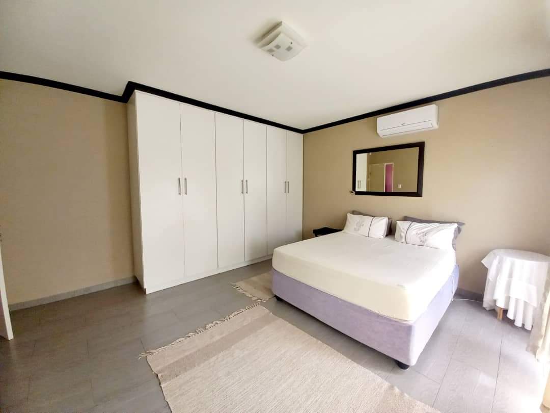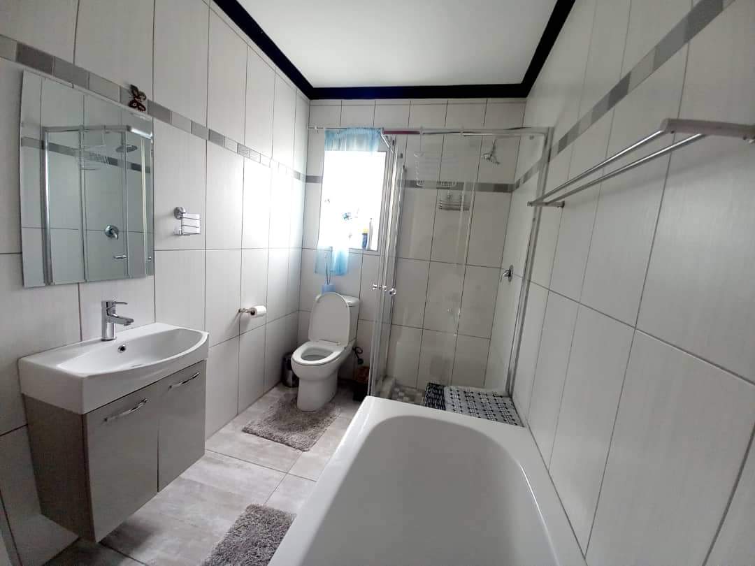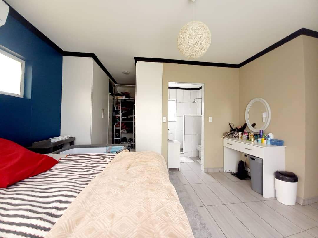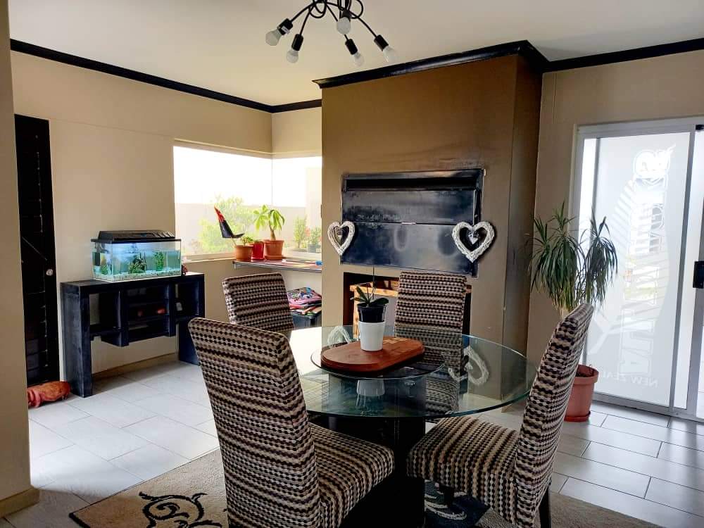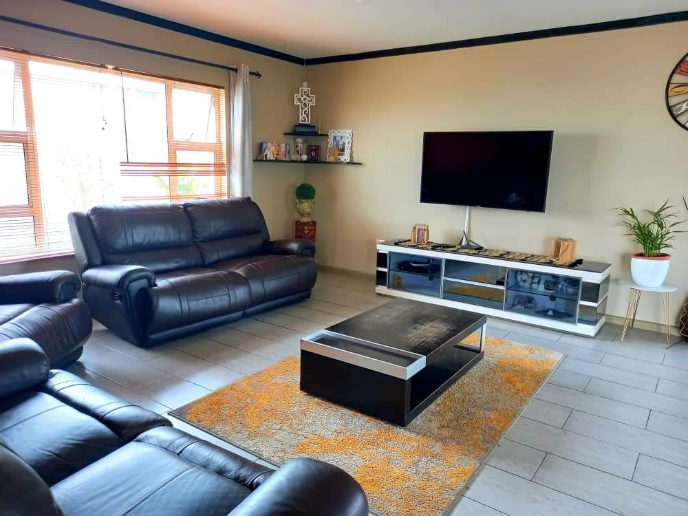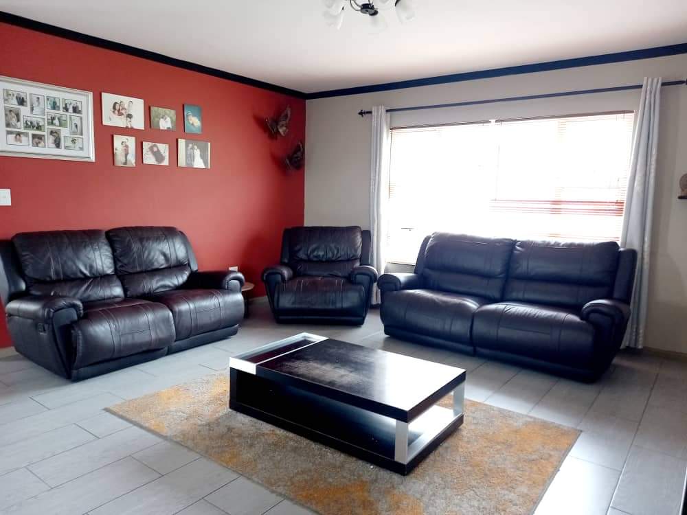 The main house features two generously sized bedrooms and two modern bathrooms, providing ample space. The heart of the home is the large, well-appointed kitchen, complete with built-in cupboards and a separate scullery, ensuring abundant storage and functionality. The inviting lounge area flows effortlessly into an indoor built-in braai space.