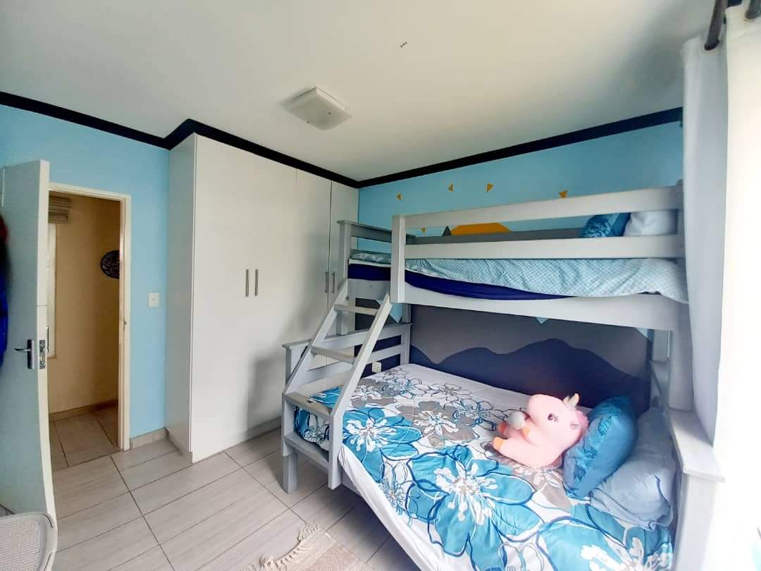 The property includes two secure garages, offering additional storage options. Step outside to discover a charming outdoor braai area nestled within a lush, green garden.