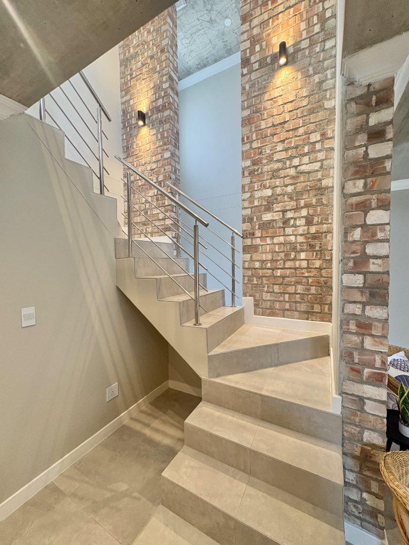 - Stunning brick face wall with stairs leading up to the landing area.