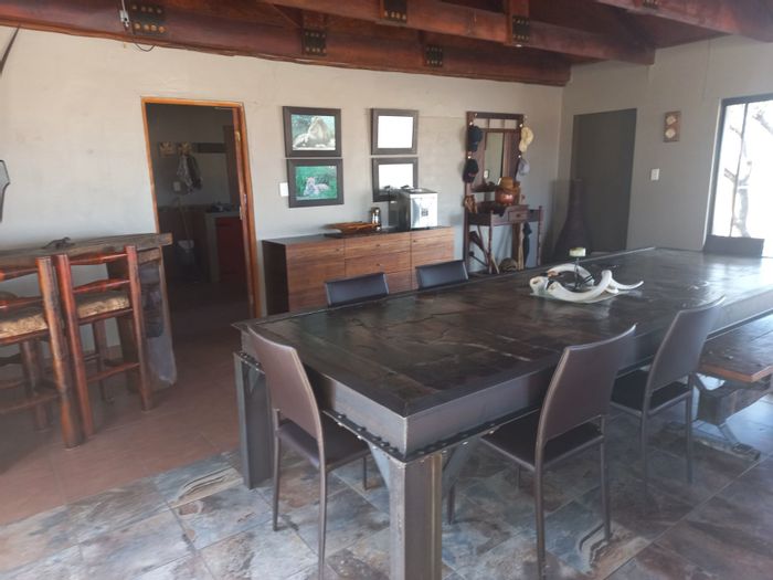Live authentic African safari life on a private game farm with 20-plus species, waterhole views, guest lodge, expansive deck with fireplace, and solar-fed infrastructure.