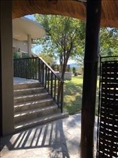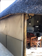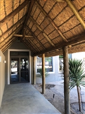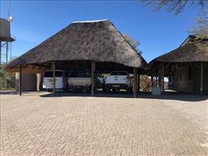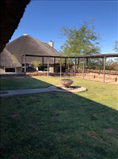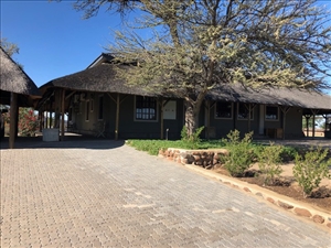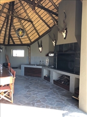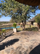 The main building houses the reception, guest lounge with a fireplace, dining area, bar, kitchen and veranda overlooking the waterholde and 9m long swimming pool. High-volume thatch-roofed with 6 spacious, nicely furnished en-suite guest bedrooms.
