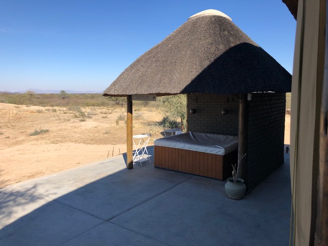 De-stress in the heated SPA or unwind next to the large swimming pool overlooking the waterhole. A big boma with fire place also overlooks the waterhole and compliments the main building.