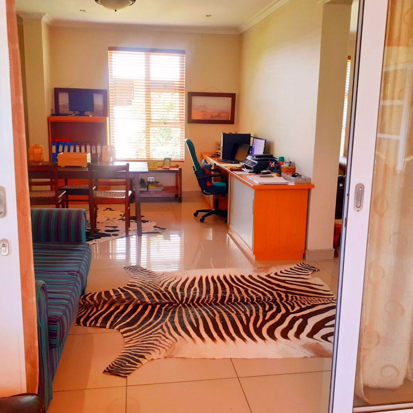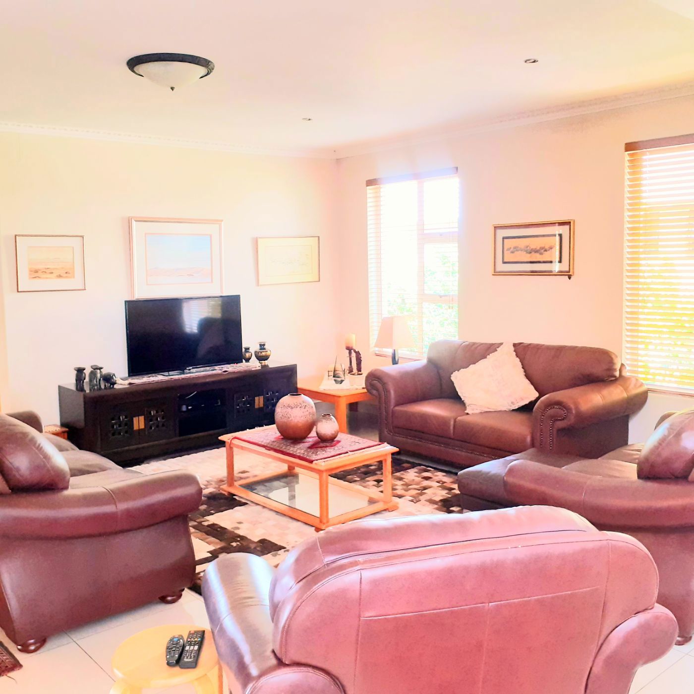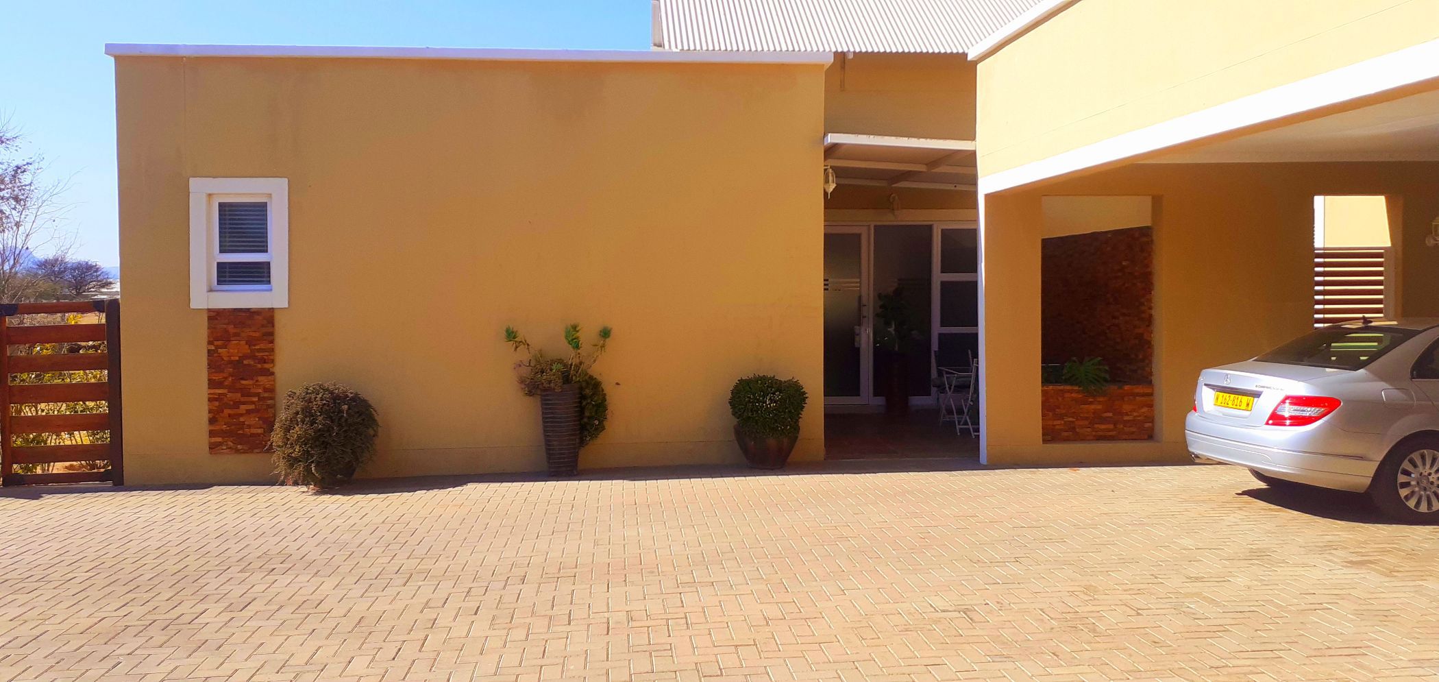 SELLING FAR BELOW VALUATION.!! This home is located at the 2nd club hole and offers an extra spacious erf with 3 bedrooms, 2 bathrooms (master en-suite), open plan kitchen with dining area, separate scullery as well as a separate laundry, guest loo, study, entertainment area with built in BBQ and bar. Double Garage and Double Carport. Over 68 planted fruit trees part of the Property's. Garden area. Prepaid Electricity. LEVIES N$ 5 167.00 that includes garden service, security at entrance and perimeter patrol with electric fencing. 2x Golf Membership and upkeep of 19 Hole Golf Course, shuttle service for residence and their staff to and from Windhoek.