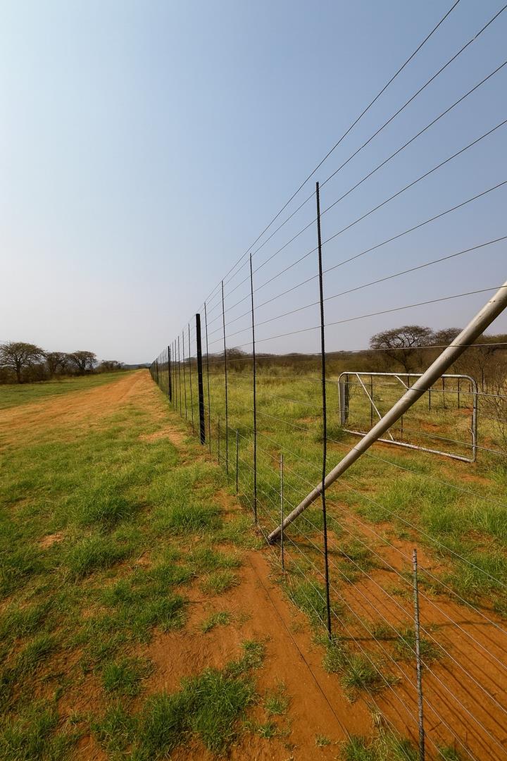 - Fencing & Security: Fully game-proof electrified perimeter (±11km) around the main camp. Electric sliding gate with surveillance; inner ±1ha jackal-proof electric fence around the dwelling.
